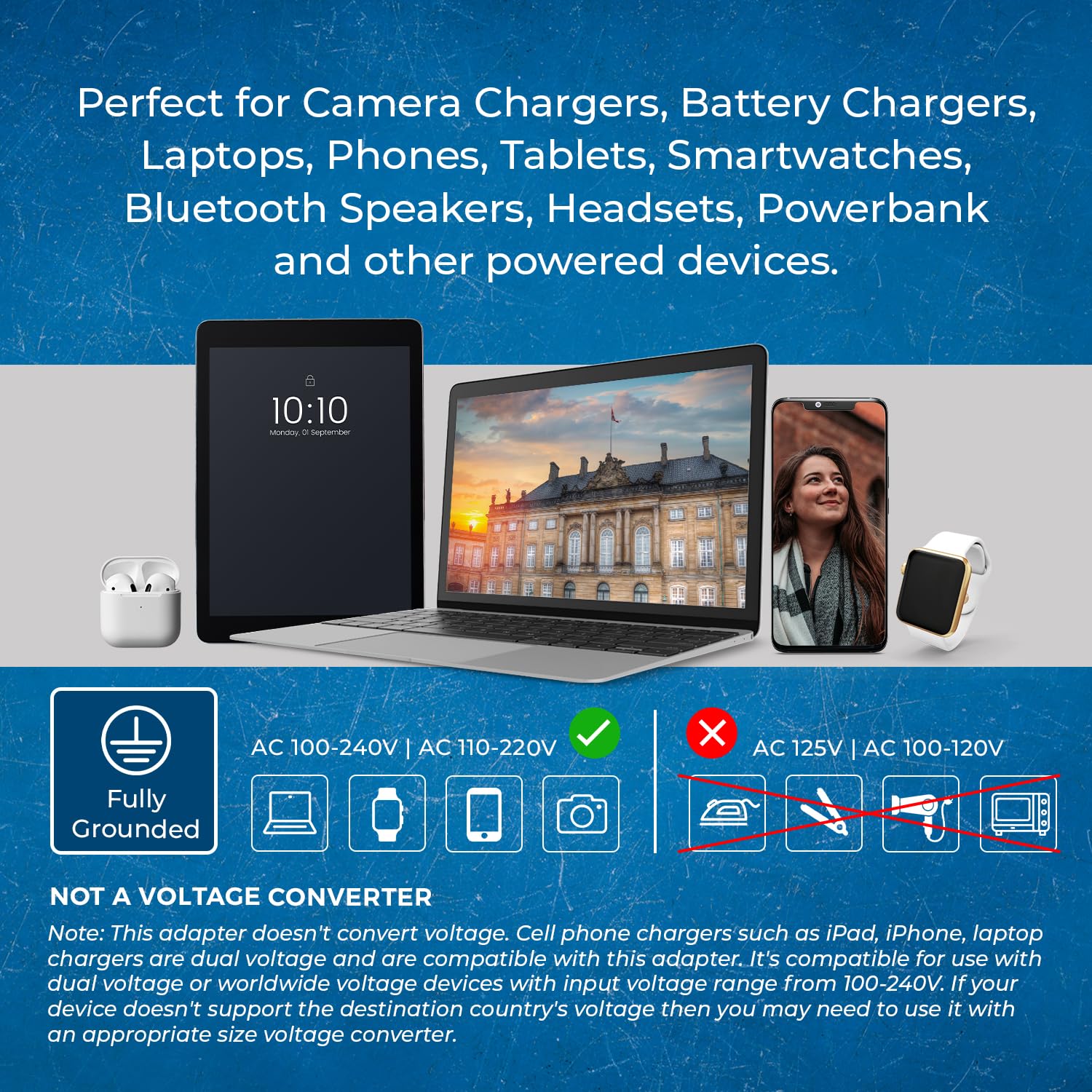 Important: This is just a travel adapter, it will not work with devices that require a voltage converter; It will only work with dual voltage products such as cell phones, chargers, & laptops etc.