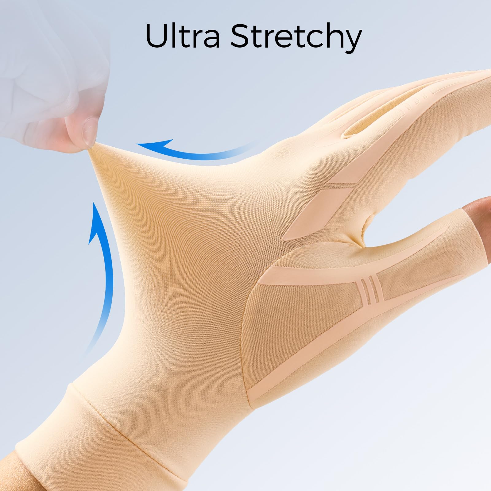 【Elastic Lycra fabric,ultra fit】Our compression gloves are made from the most wearable elastic Lycra fabric, Contains 23% spandex, with an elastic recovery rate of up to 95%. The elasticity is 10 times of ordinary fabrics. Fits your skin naturally. After wearing, every compression is just right, allowing you to feel the ultimate comfort during therapy.