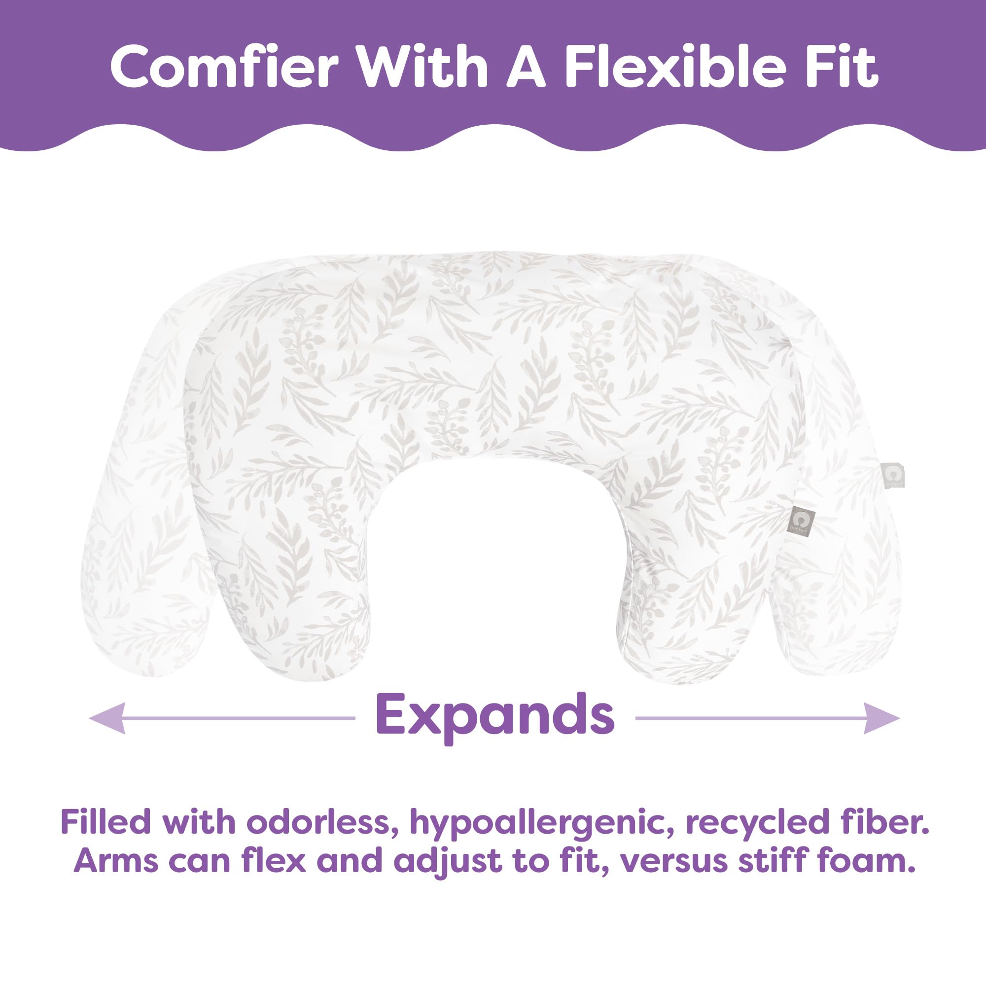 Hugs Every Curve: Baby feeding pillow features a wider opening and flexible fiber fill to embrace more body types comfortably without breaking or tearing like foam; our updated Boppy pillow with patent-pending design effortlessly slides around the waist with one hand for easy adjustments