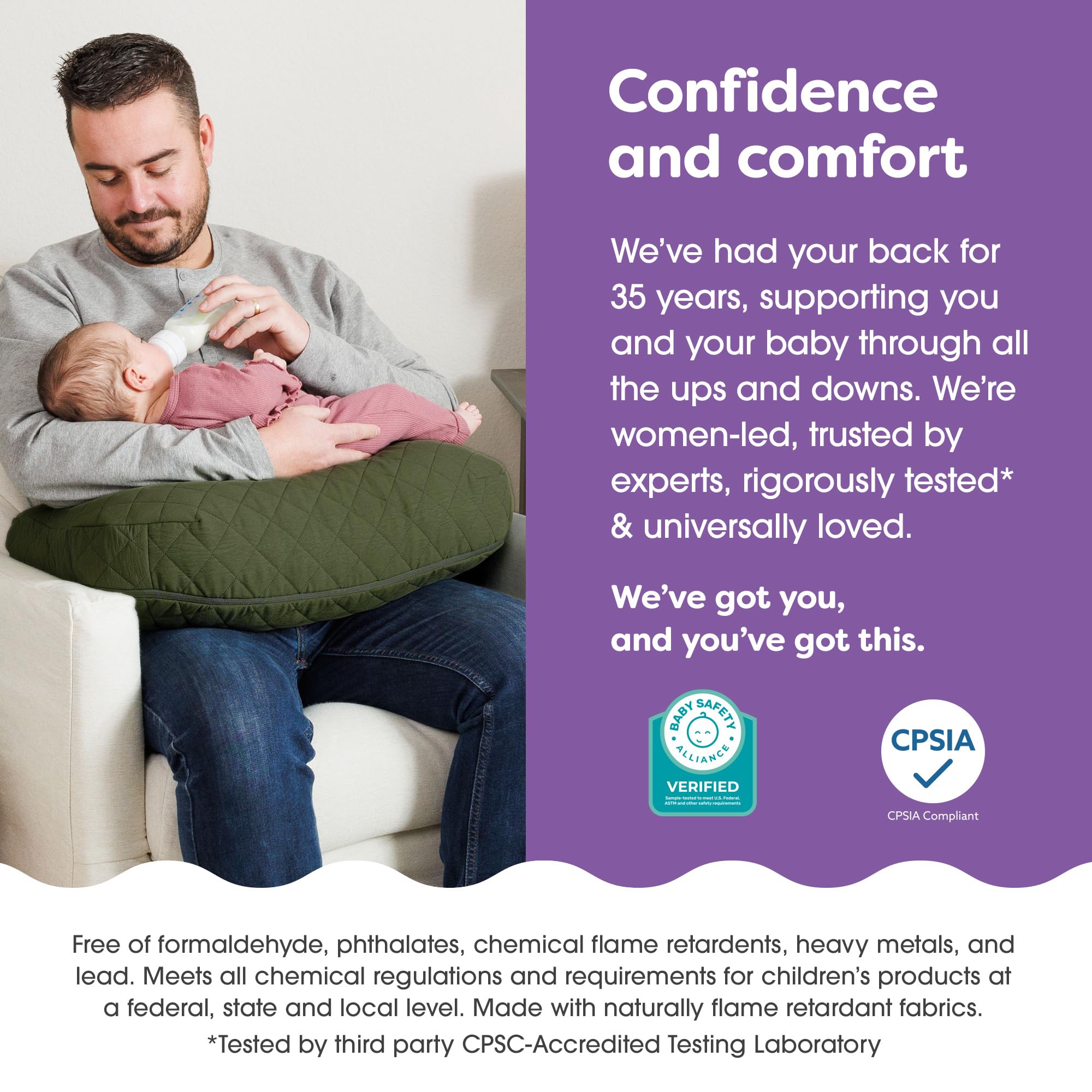35 Years of Confidence: Better connecting babies and moms since 1989 with breastfeeding pillows, baby carriers and other baby essentials so you can worry less and enjoy more; The first brand verified by the Baby Safety Alliance in the Nursing Pillow category for meeting the highest standards in safety, performance and quality; Meets and exceeds standards for ASTM F3669 Consumer Safety Specification for Nursing Pillows and 16 CFR 1242 safety standard for nursing pillows, so you can have peace of mind