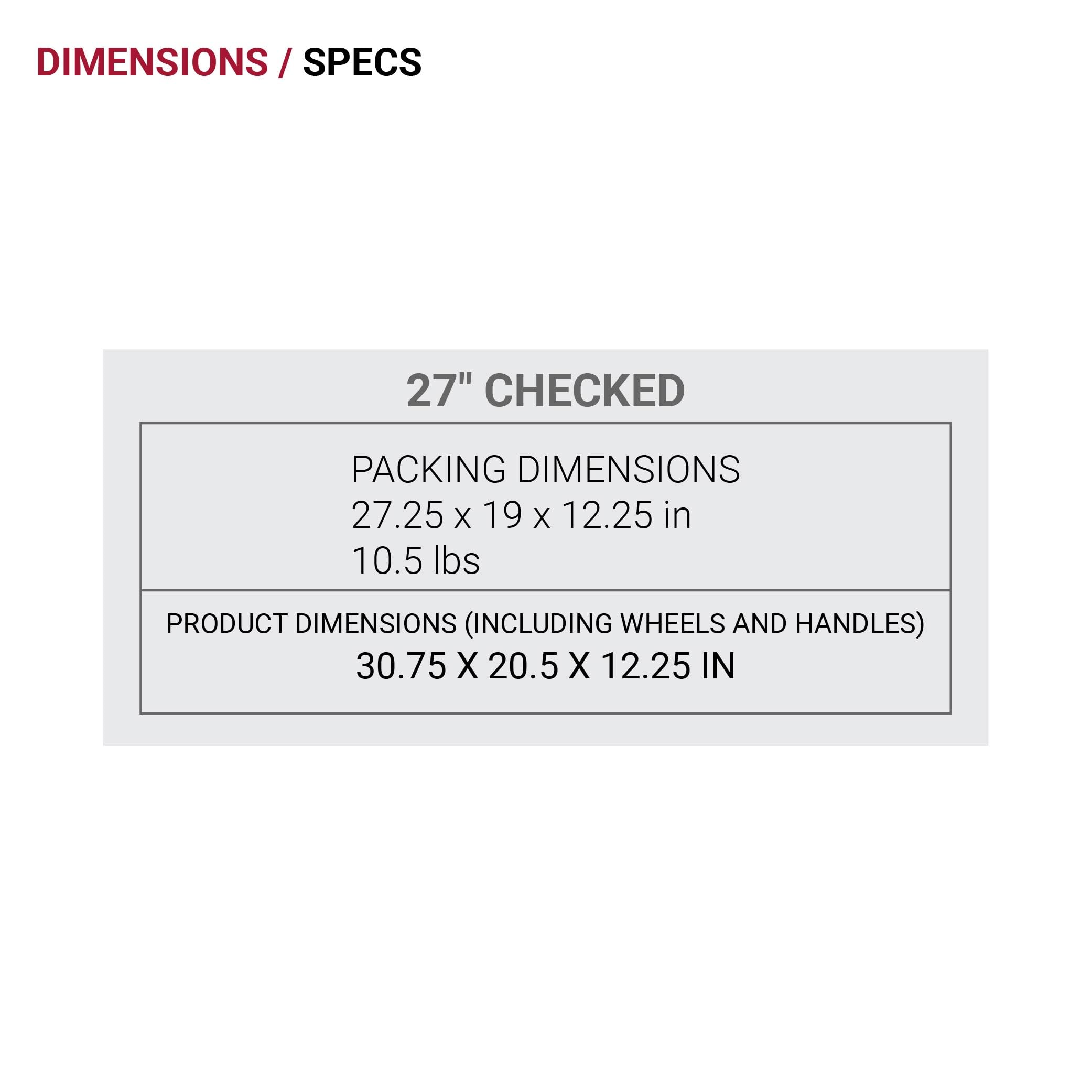 Expandable Checked Luggage: With 27.25 x 19 x 12.25 inches of packing space, this rolling suitcase is the perfect size for any trip; At 30.75 x 20.5 x 12.25 inches overall, it fits all your travel essentials, especially on longer trips