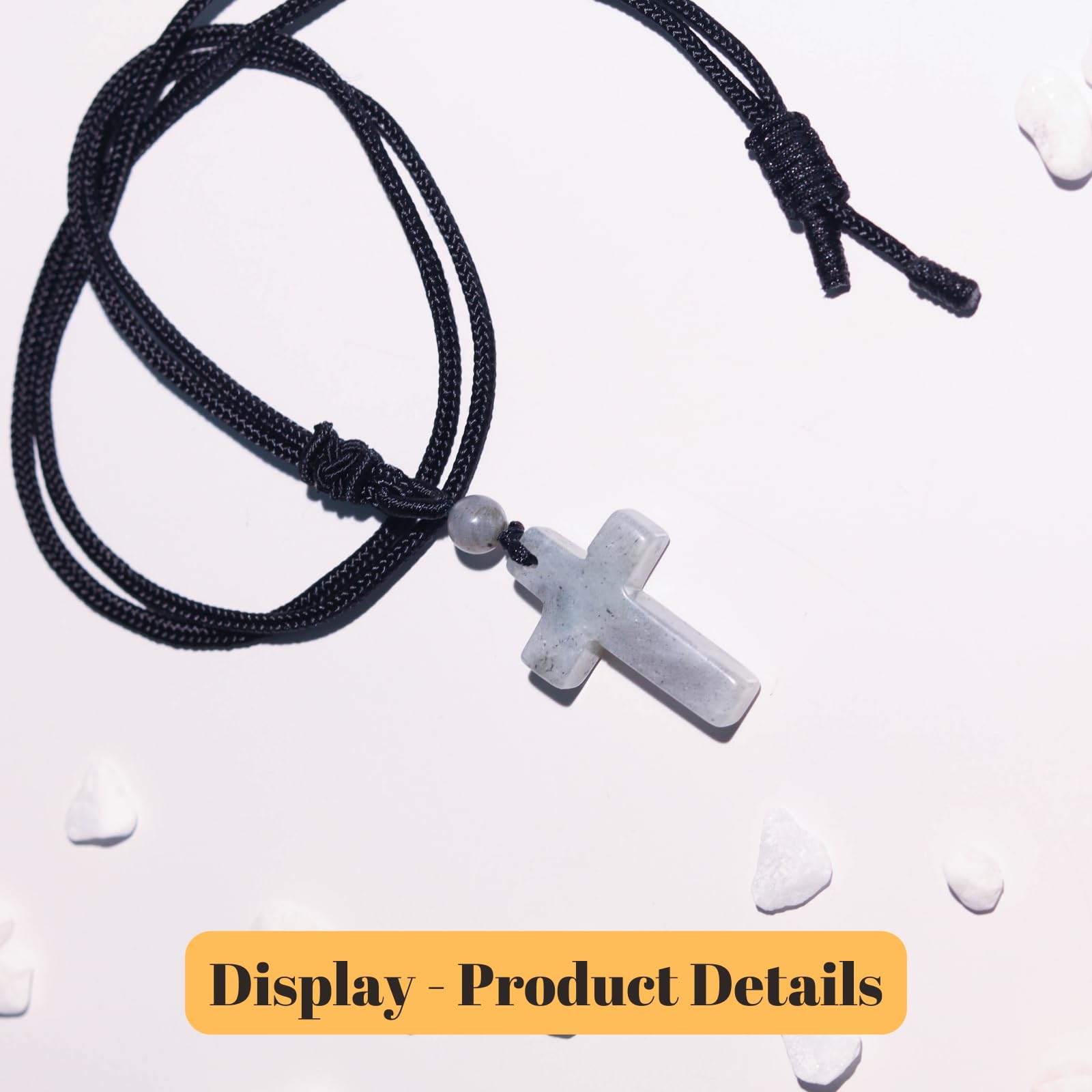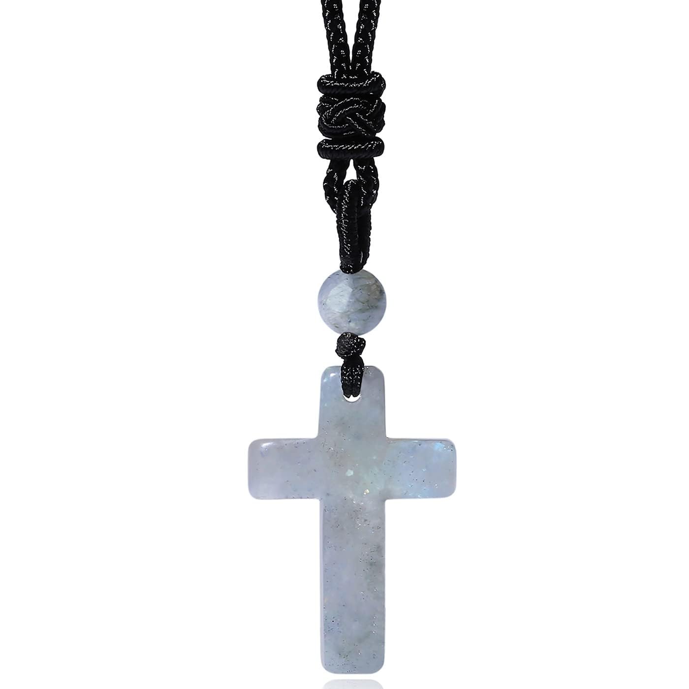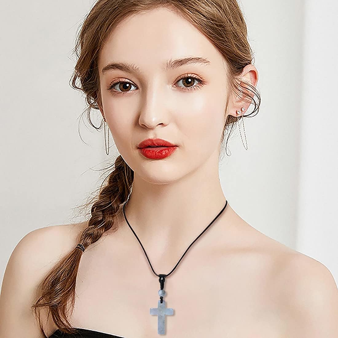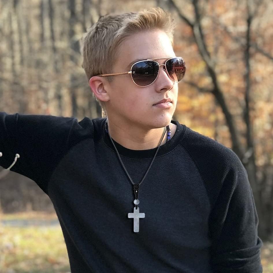 【SPECIFICAITON】1 PCS Cross Necklace for Men Women Adjustable Black Rope Natural Crystal Necklaces.(approx)Size:1.2*0.8*0.24 inch;Weight:0.02lb/ (15g).Packaged with an exquiste gift box,ready for gifts.