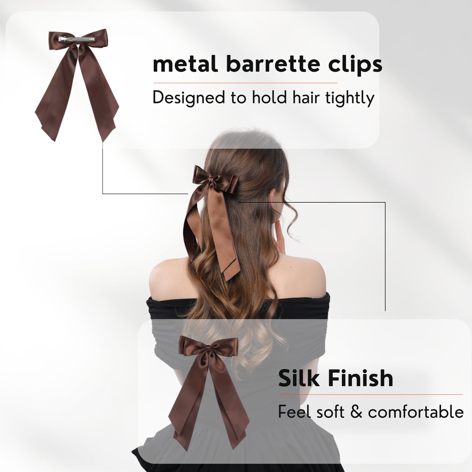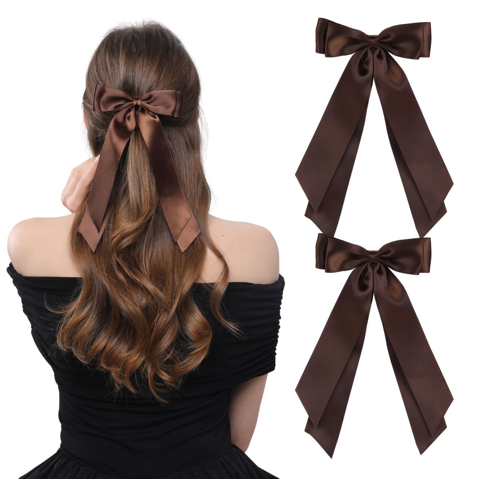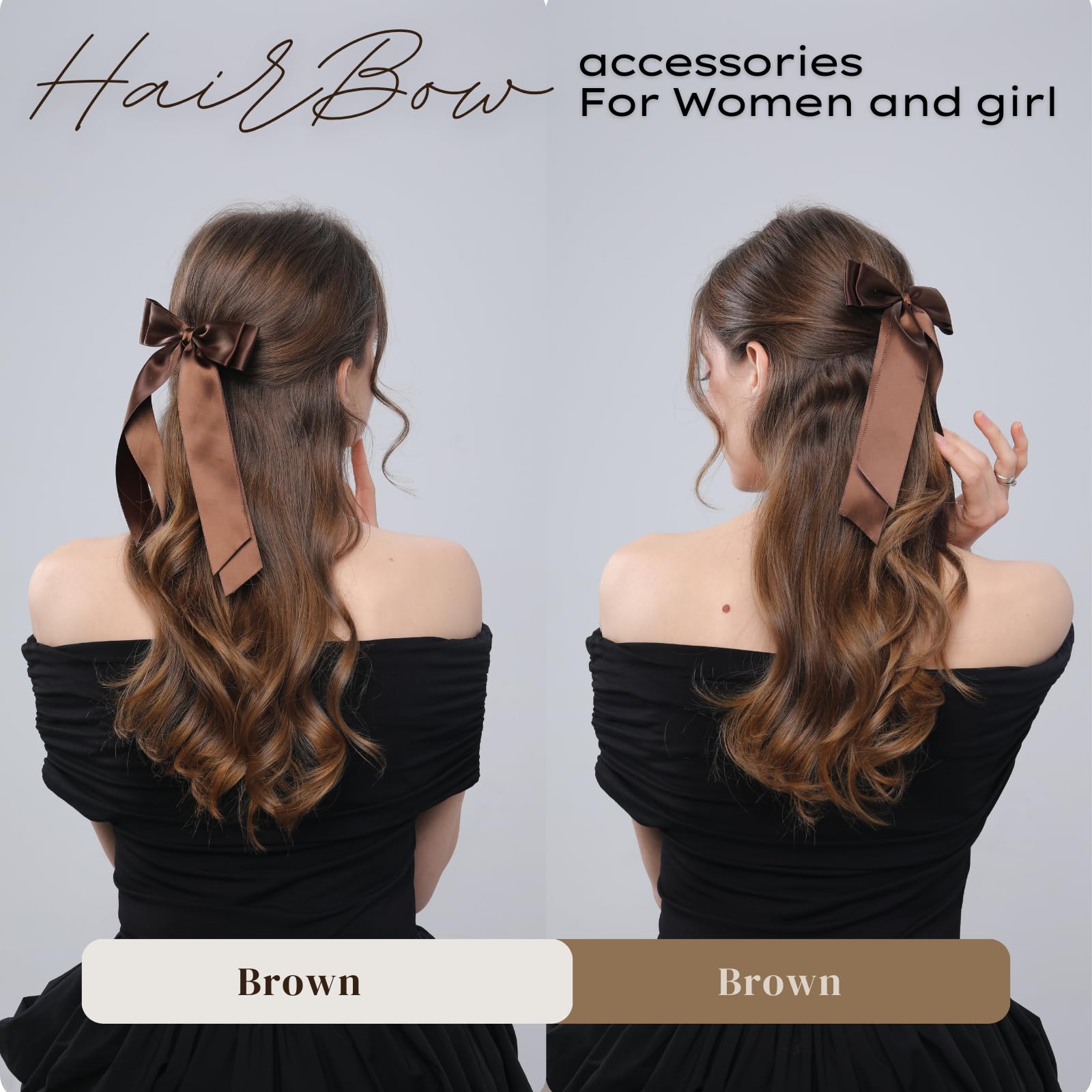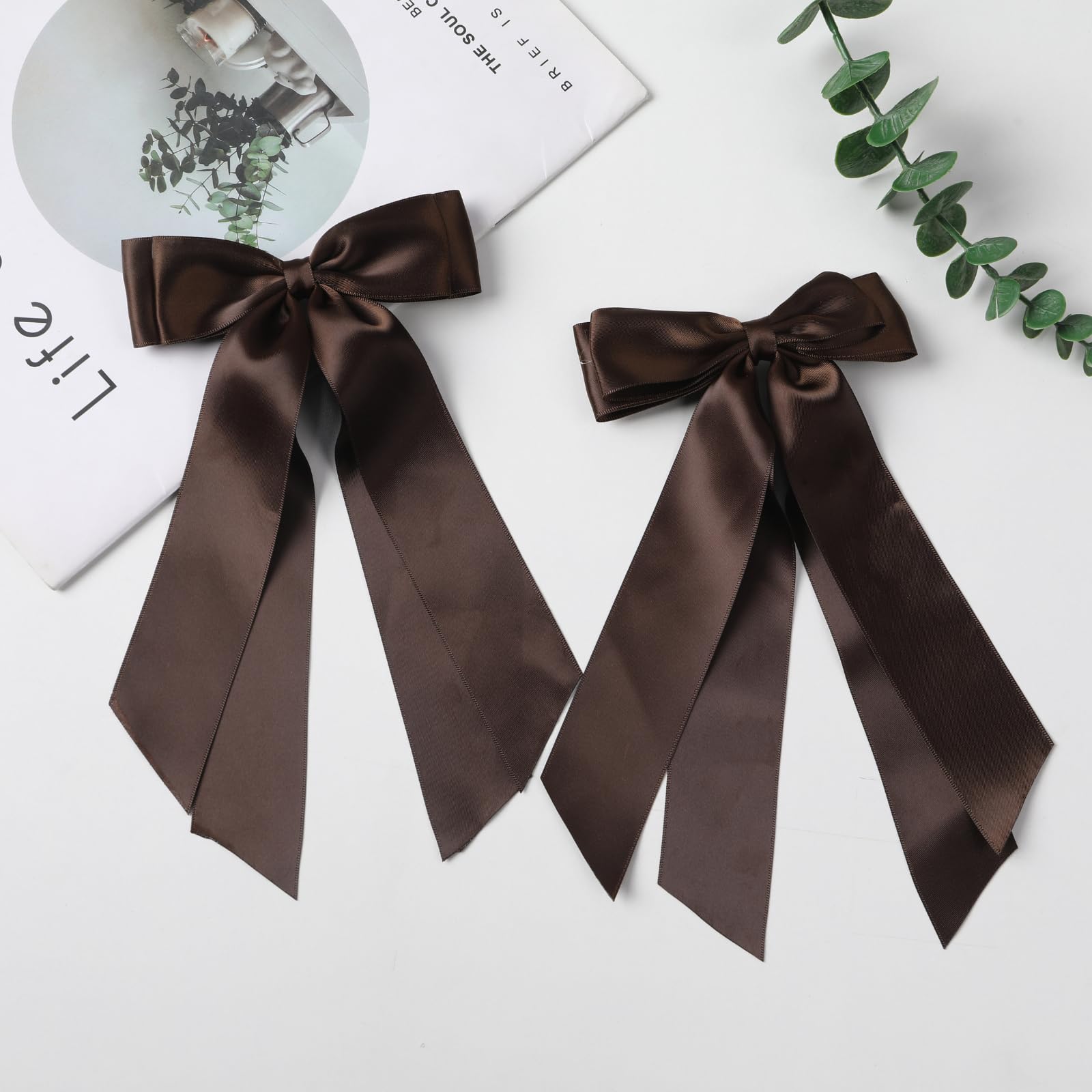 LuSeren 2 PCS Double Layer Hair Bows Brown Black Hair Ribbon Clips Ponytail Holder Accessories for Women Girls Toddlers Teens Kids