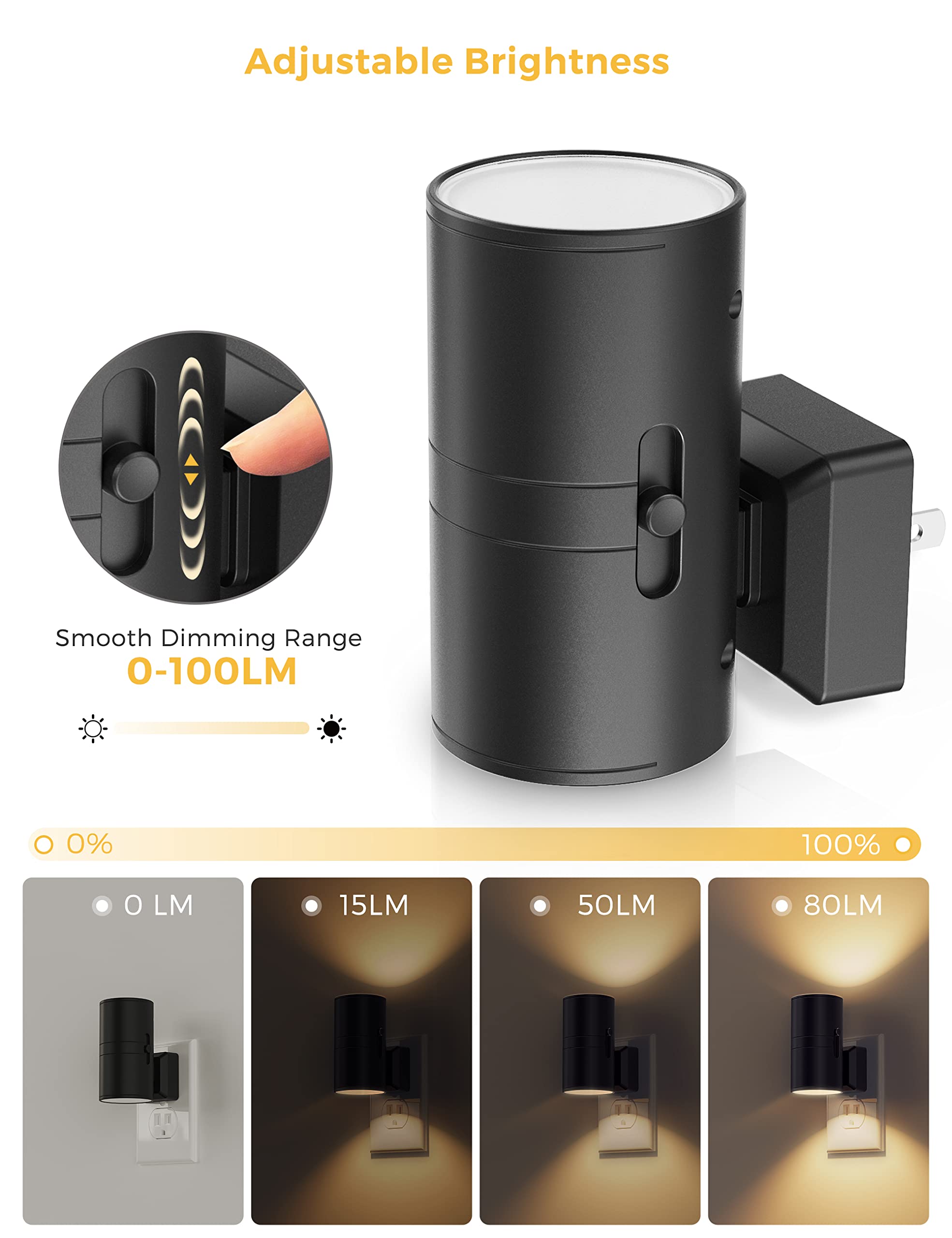 Dimmable Night Lights -- The nightlight adjustment button can be adjusted from 0-100LM, which can meet your different needs.