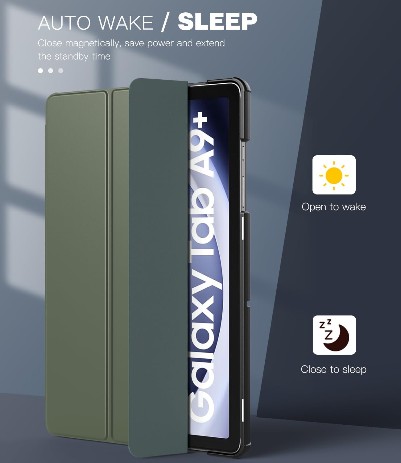 Auto Wake/Sleep: Magnetic cover provides auto sleep/wake feature. Save much power for your tablet so that reduce charging frequency. Slim and lightweight design will not increase the bulk of your tablet, easy to snap on and off