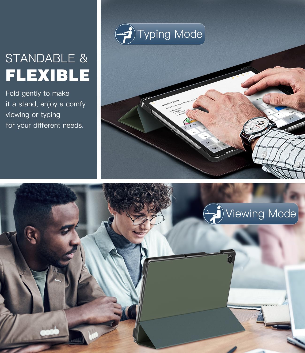 Adjustable Stand Angles: The top of this Galaxy Tab A9 Plus Case folds back to make a stand, which provides a sturdy stand position for both viewing and typing. Free your hands when watching, reading, or writing, a good way to alleviate neck strain