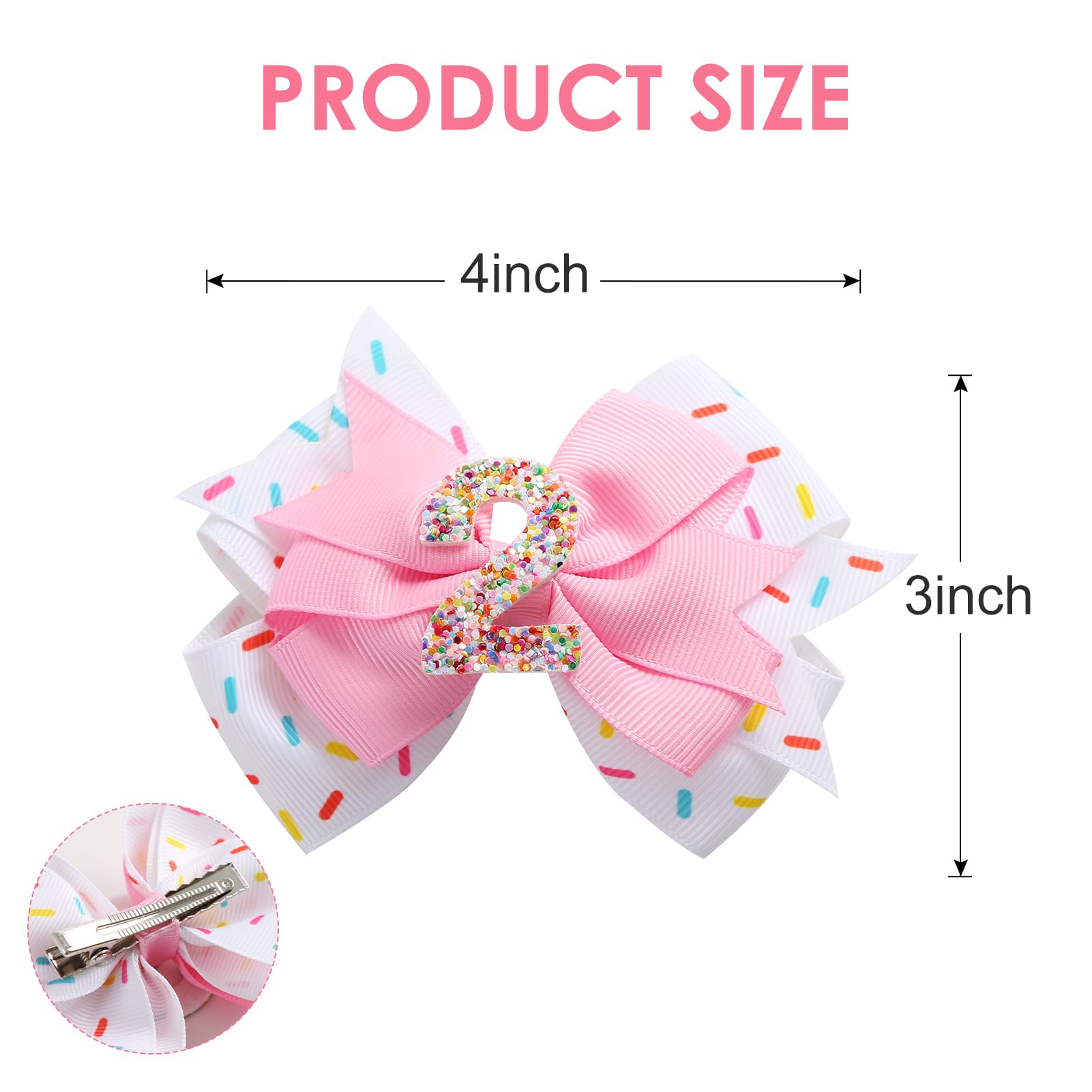Material: Bow is made of quality ribbon, 1 bow is attached to pink nylon and 2-6 bow is attached to alligator clip. Colored glitter on the Number does not flake off.