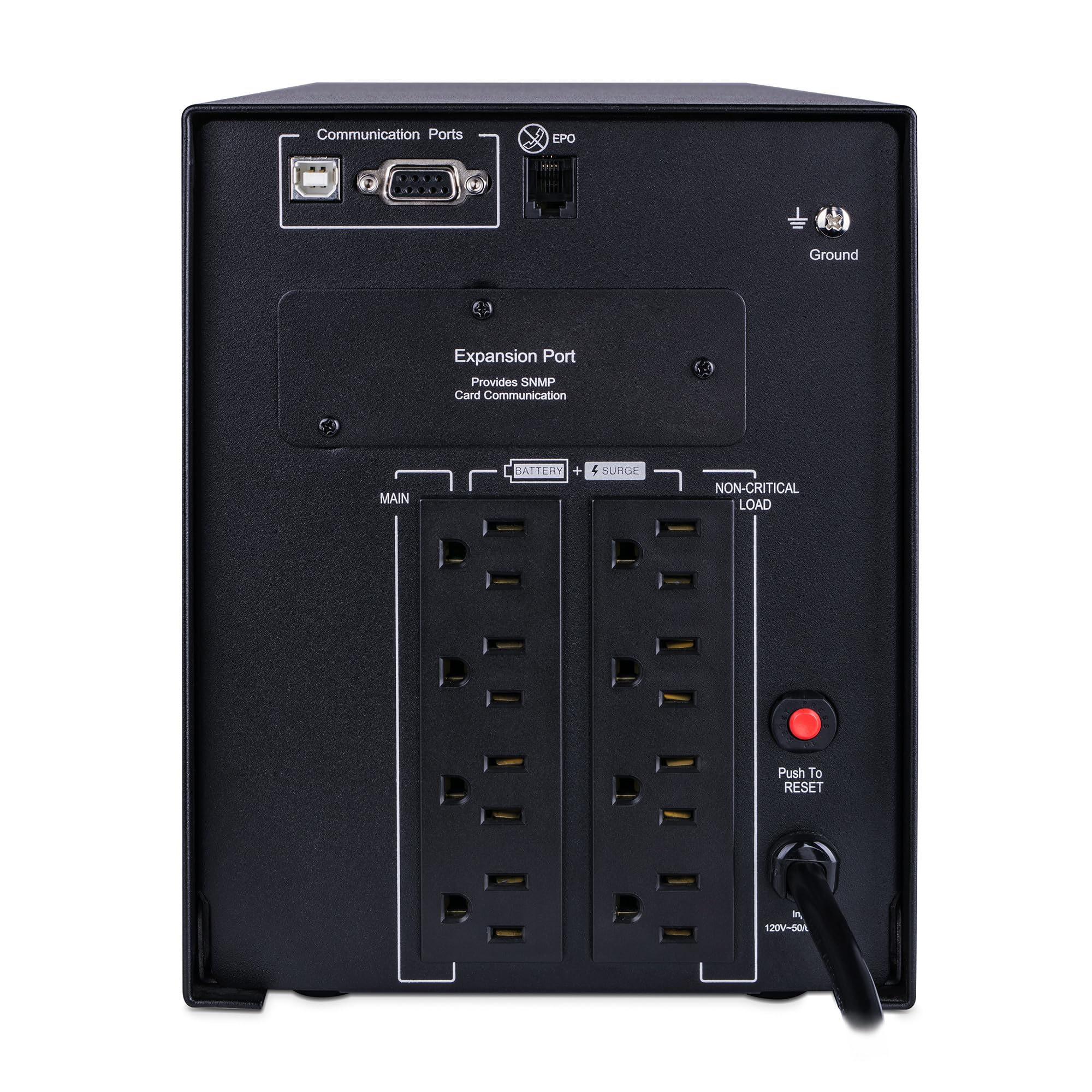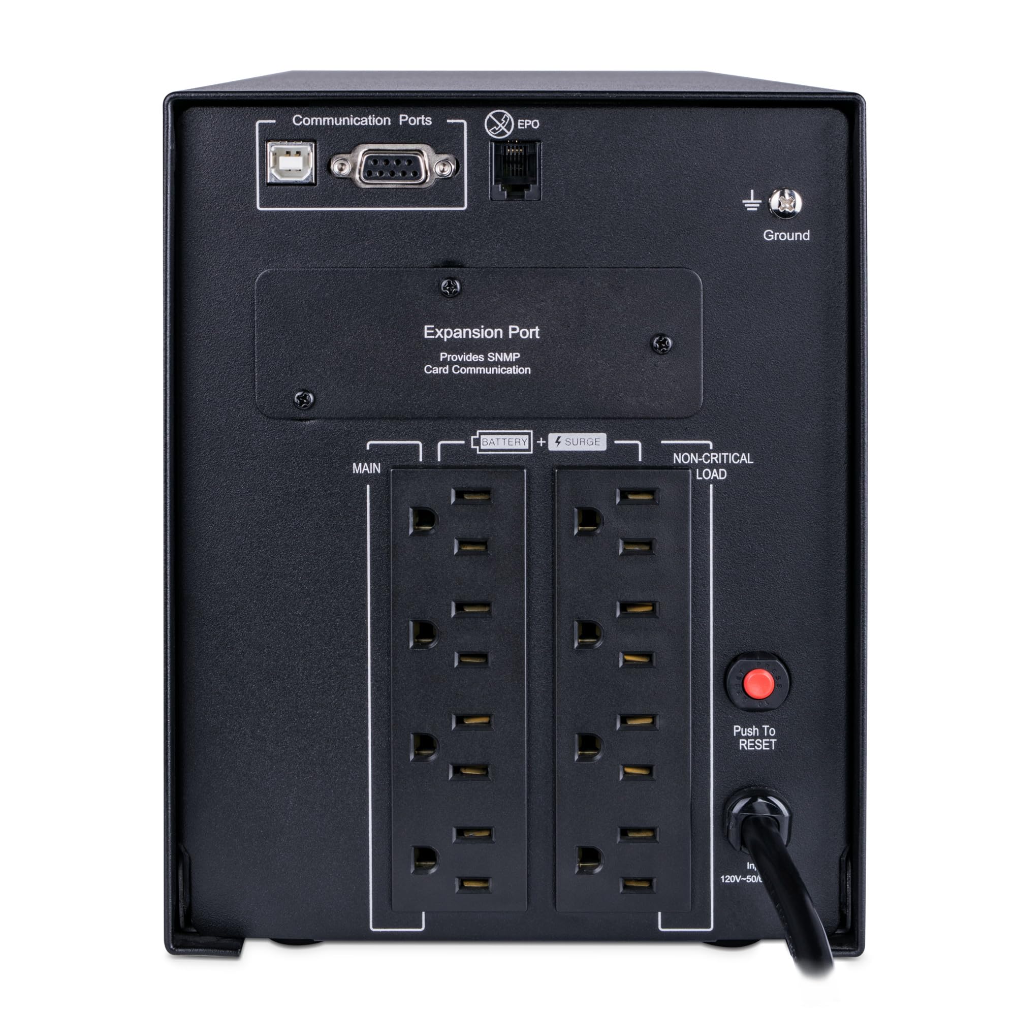 EIGHT BATTERY BACKUP AND SURGE PROTECTED NEMA 5-15R OUTLETS: Safeguard corporate servers, department servers, storage appliances, network devices, and telecom installations; INPUT: NEMA 5-15P straight plug with six foot cord