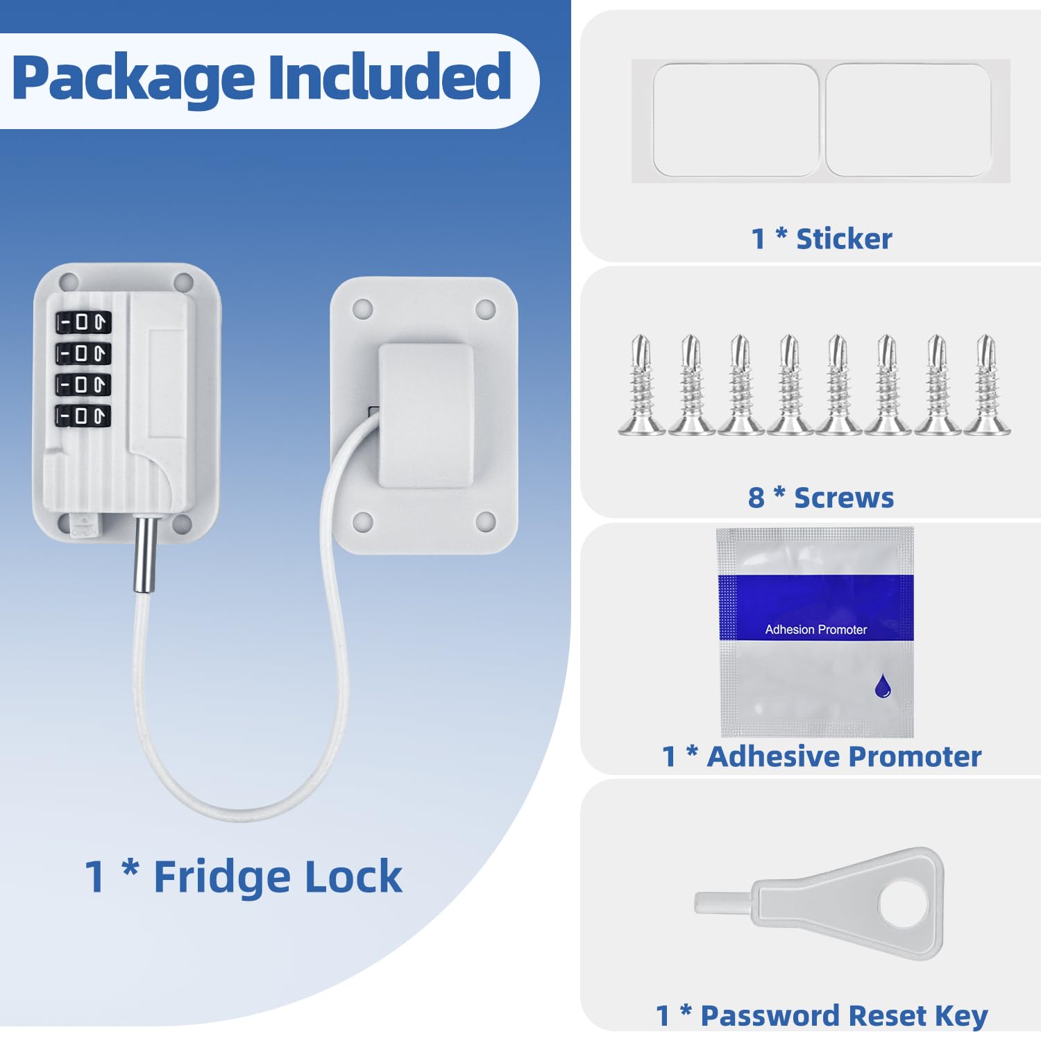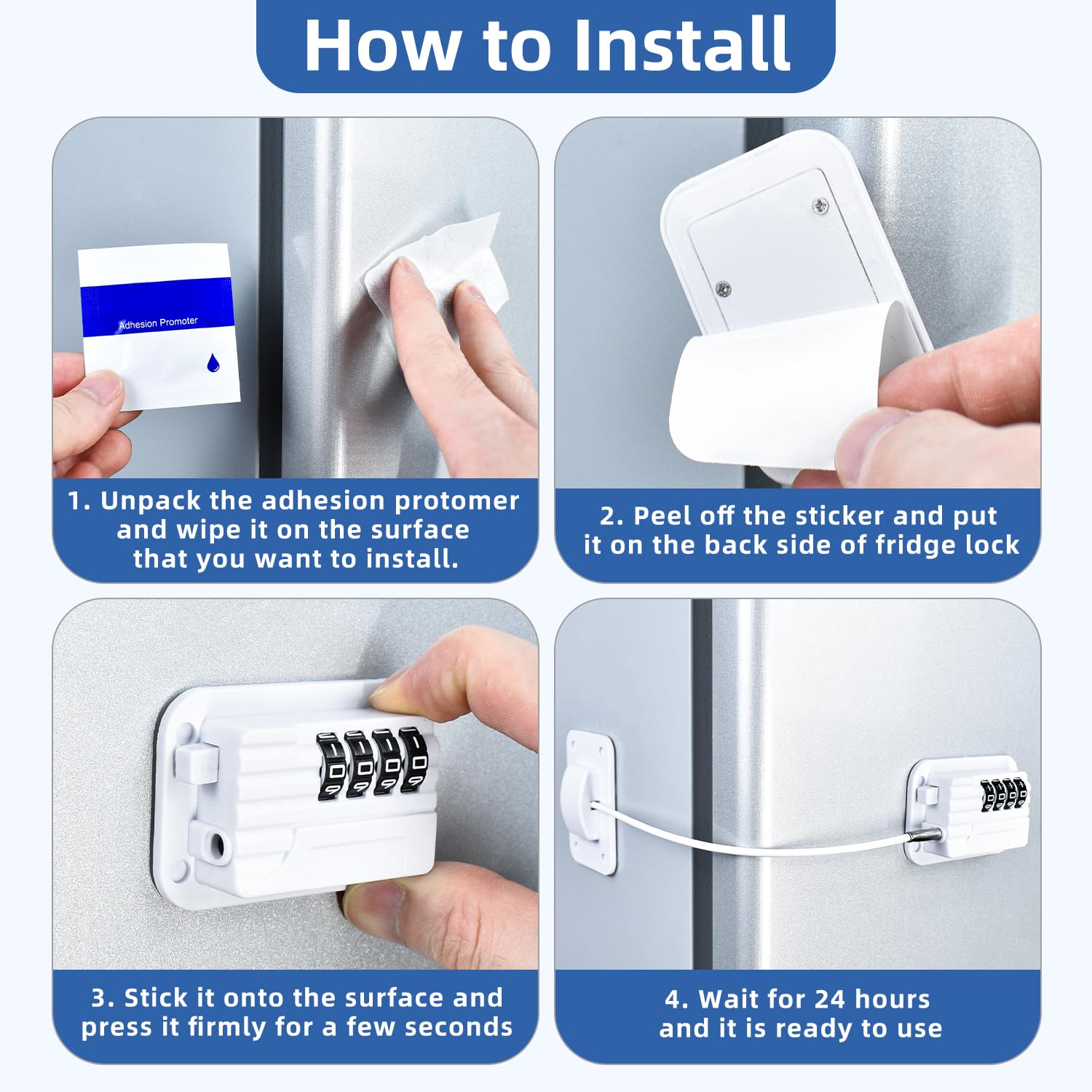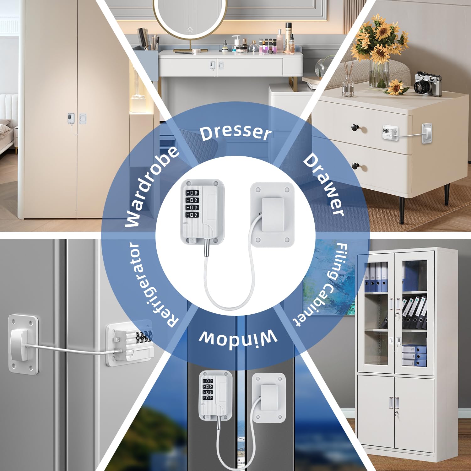 Universal Safety Solution: Effortlessly secure refrigerators, cabinets, drawers, and more with our sturdy adhesive lock—no drilling or tools required