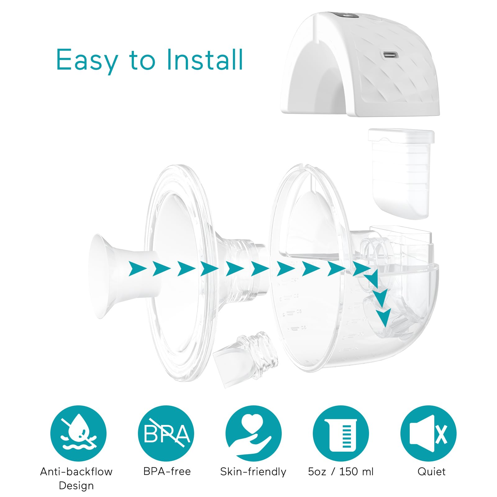 Safe Enough: Made of BPA-free food-grade silicone, safe for both moms and babies. The anti-backflow design and sealing system prevents breast milk from leakage. The capacity is up to 150ml/5oz, and the optimal collection volume is 120ml/4oz