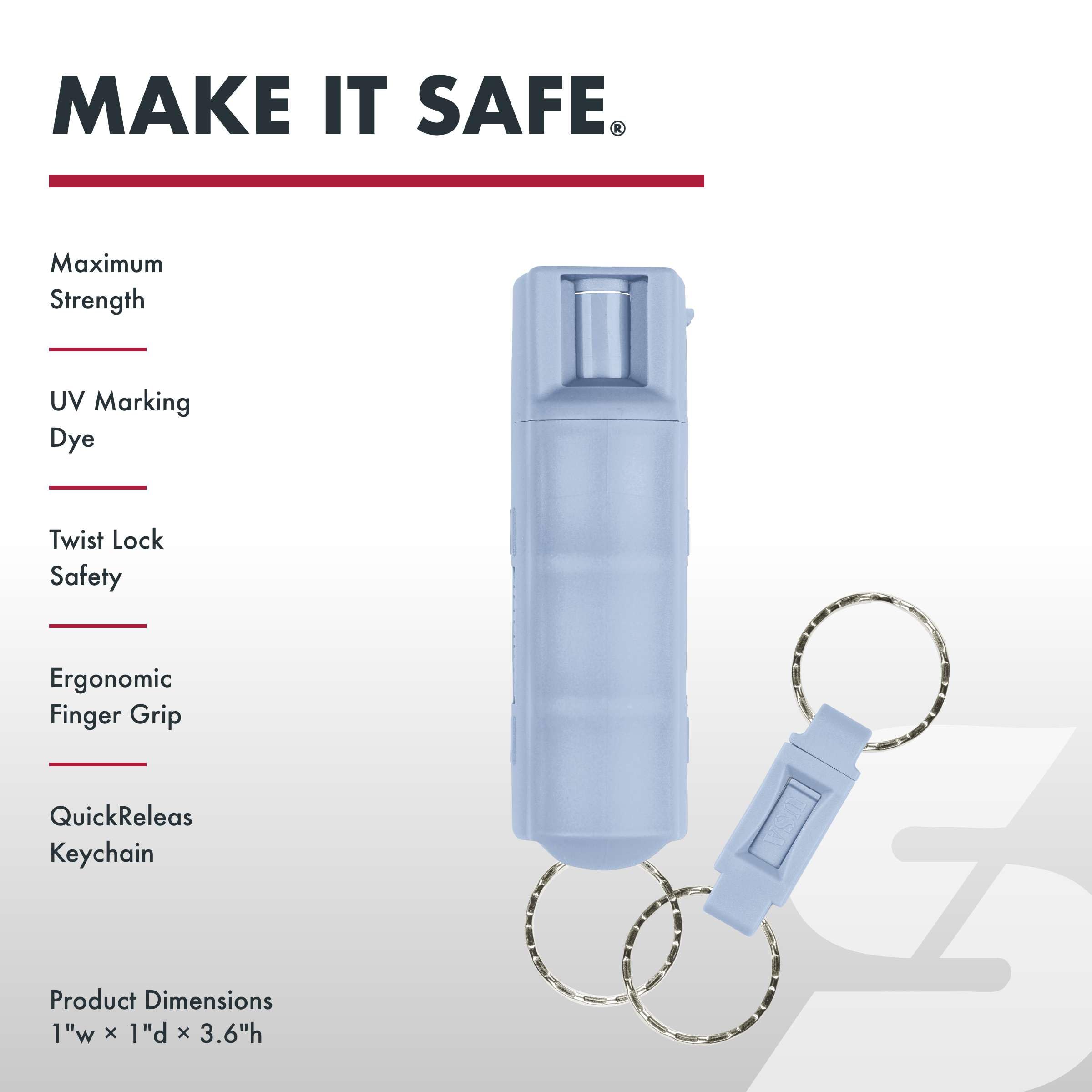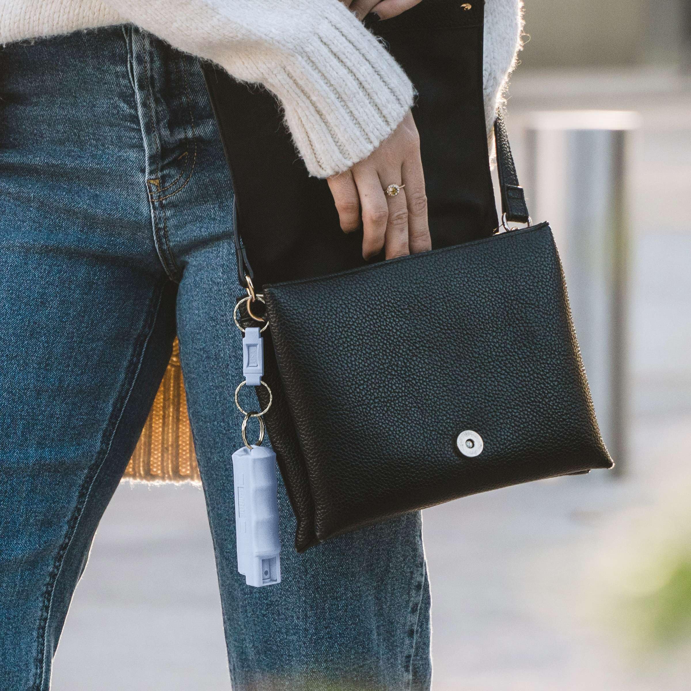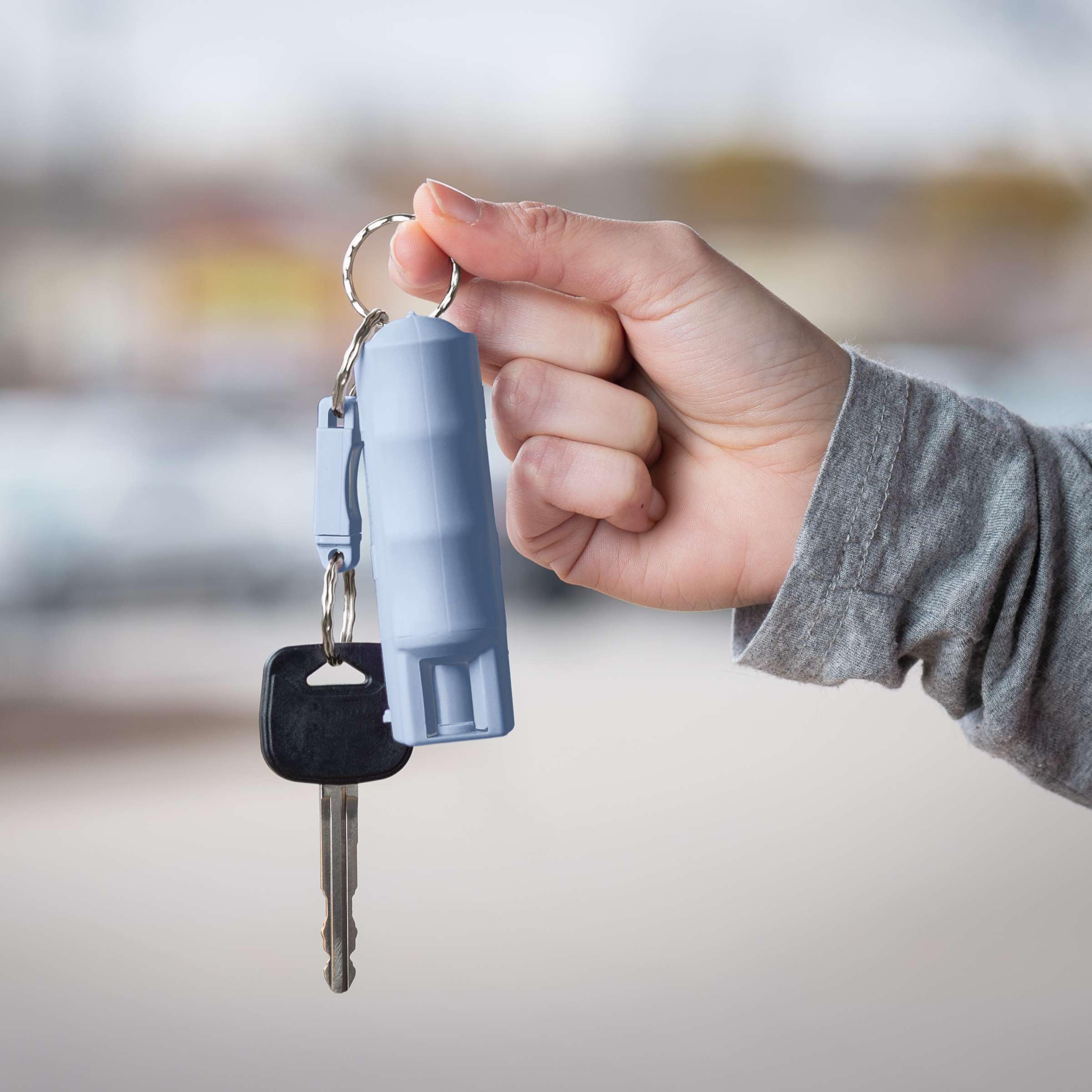 FASTER & EASIER TO HIT THE TARGET: Easiest to grasp finger grip enhances your aim and helps keep your eye on the threat; Includes Quick Release Keychain for immediate access to spray when seconds count; Easy To Attach - keys, bags, purses, lanyards for instant access; Secure and easy to use twist lock safety