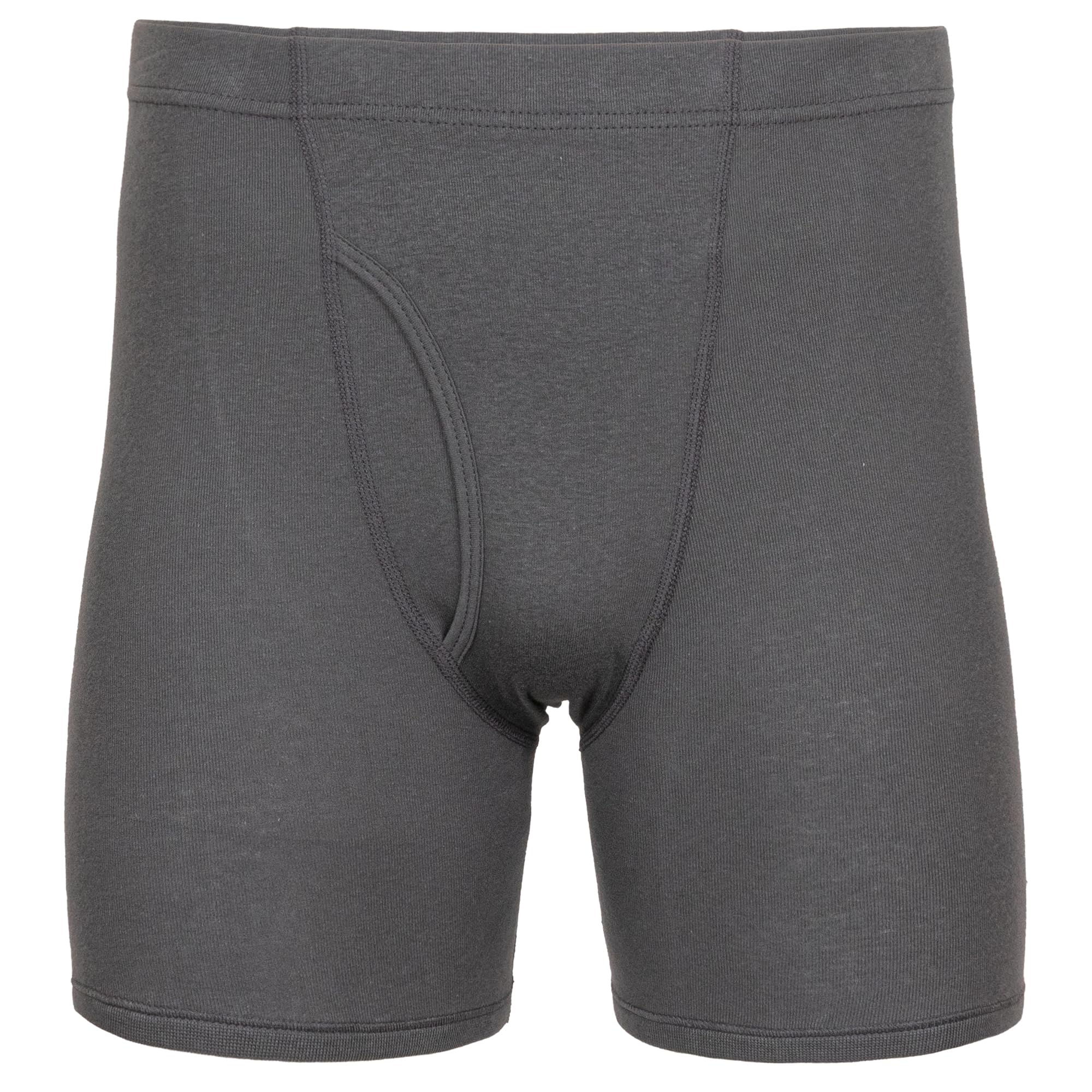 Description Gildan men's covered waistband boxer brief is made with premium soft cotton for all day comfort. Our solid colors are made with 100 percent cotton while our heather colors are made of 90 percent cotton and 10 percent polyester. Gildan covered waistband boxer briefs are manufactured with a 6 inch inseam. Our boxer briefs have a plush, non-binding soft covered waistband that keeps its shape even after washing. The boxer briefs are designed with a modern fit and also low profile leg bands that stay in place. We offer our covered waistband boxer brief in 2 color assortment. Be sure to check out our other amazing underwear products. We offer a stretch cotton boxer brief that is a cotton/spandex blend, a stretch poly boxer brief a poly/spandex blend and we now offer a 100 percent polyester boxer brief.