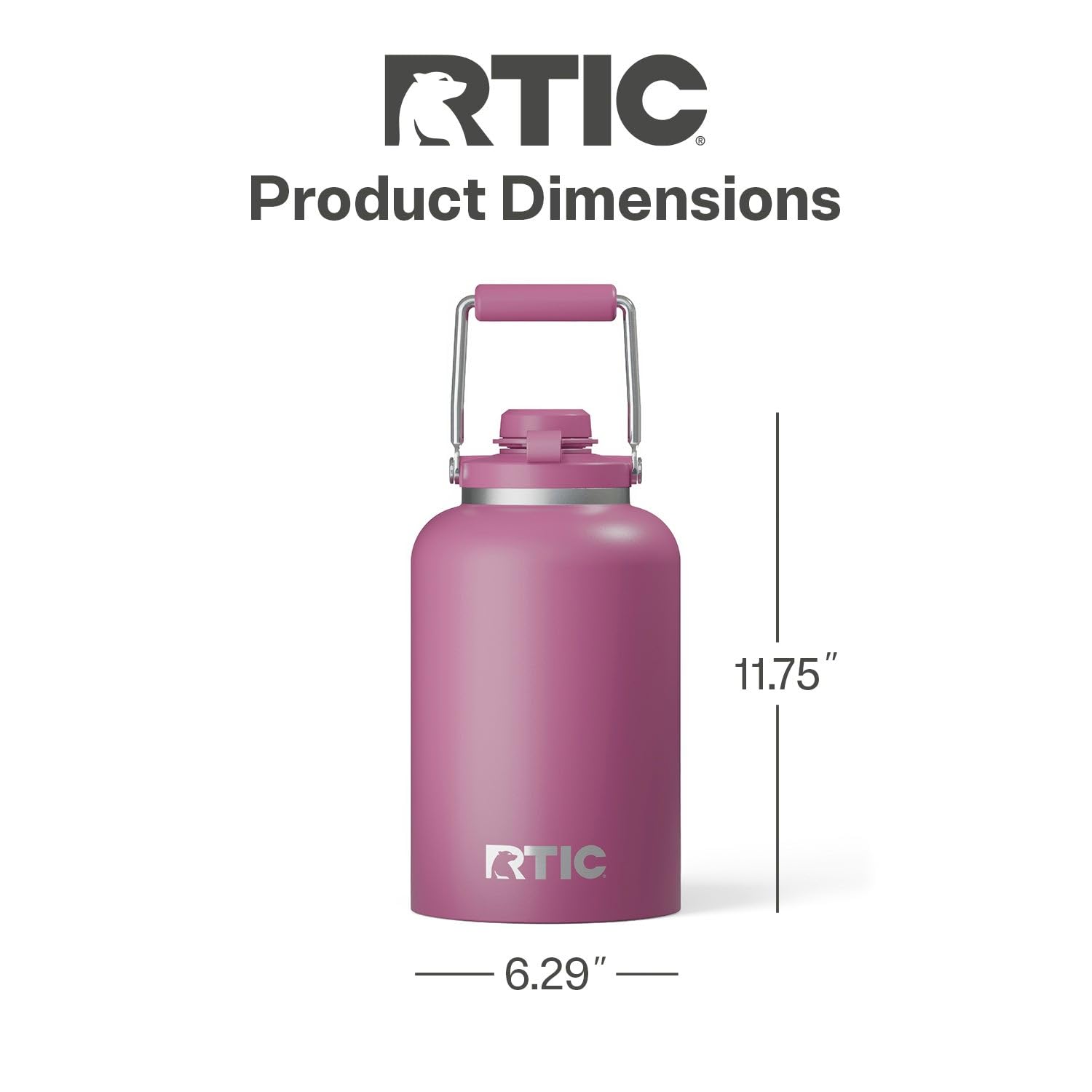 DISHWASHER SAFE AND NO SWEAT EXTERIOR: Dishwasher-safe design (lid top rack only); the jug’s no-sweat exterior keeps your hands dry, while ensuring no water rings; 1/2 Gallon Jug: 5”L x 10” H( top of lid only); 1 Gallon Jug: 6.29”L x 11.75” H( top of lid only)