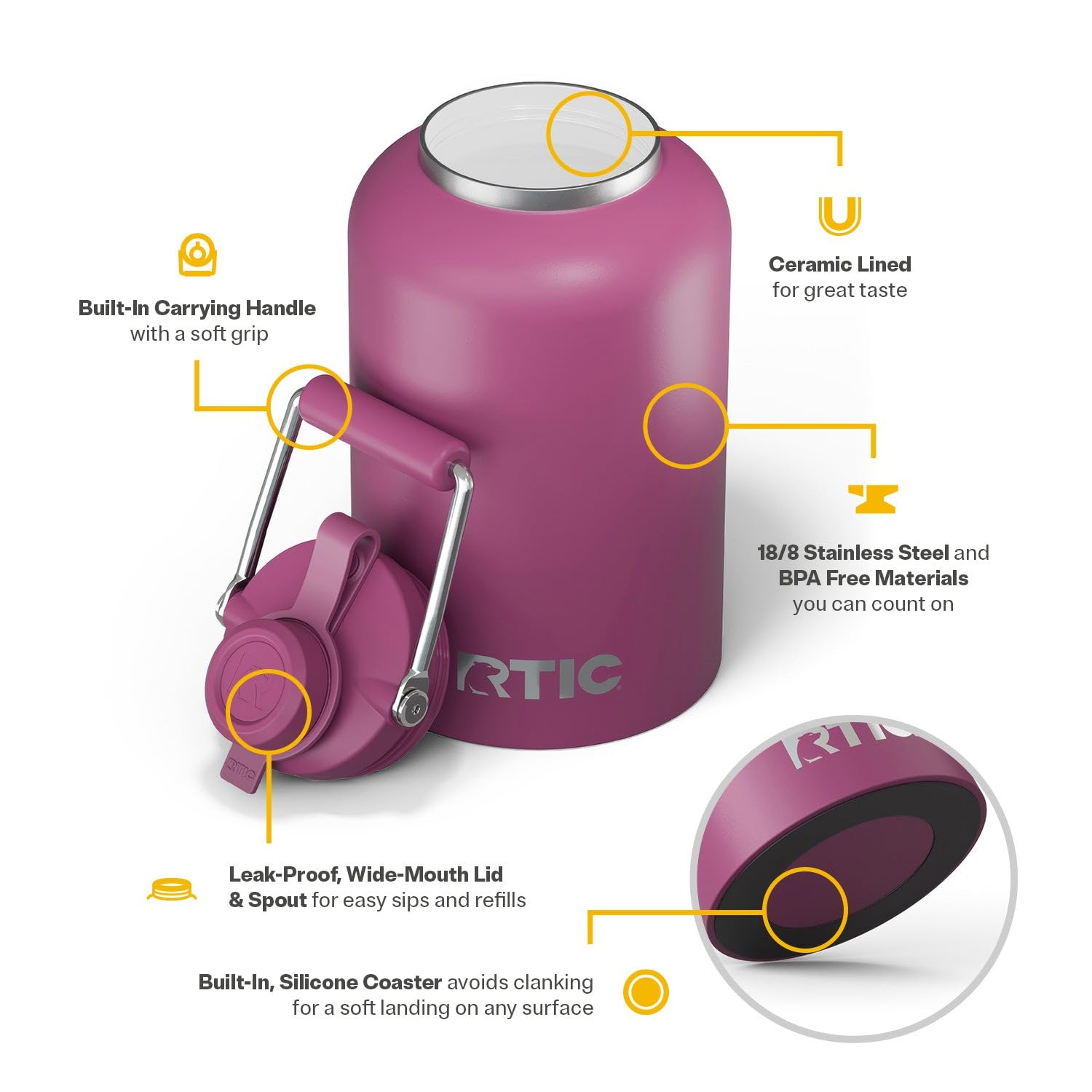 ALL-DAY HYDRATION: Meet the Outback Jug–designed to keep your beverages fresh on every journey; featuring a ceramic-lined interior that ensures your drink never has a metallic taste, this stainless steel jug water bottle lets you enjoy your favorite drinks
