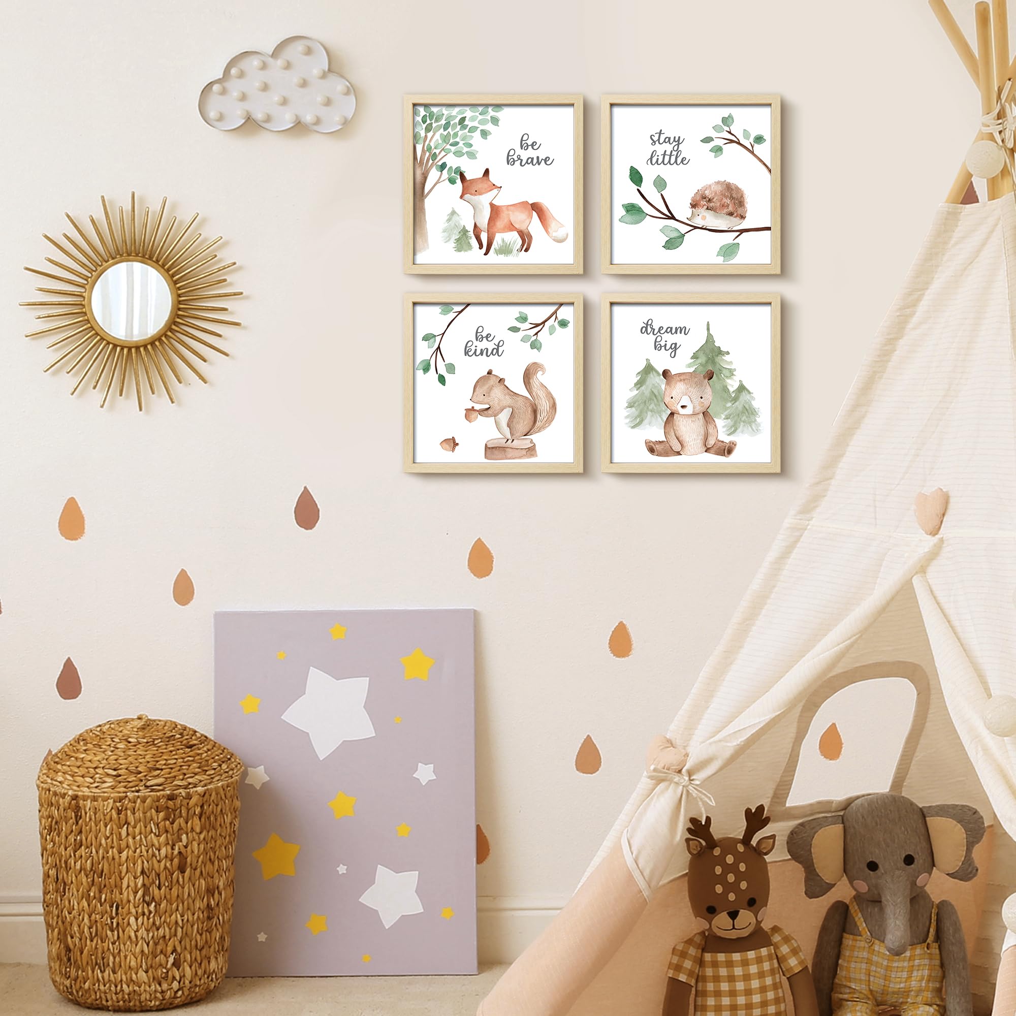 Inspirational sign: Each piece in the set carries a positive message - "Be brave," "Stay little," "Be kind," and "Dream big" - encouraging children to embrace life's adventures with kindness and courage