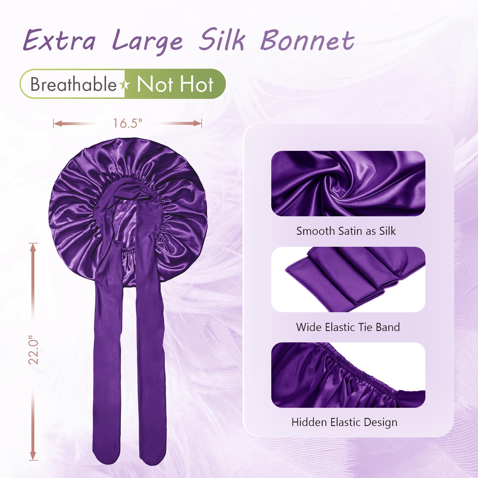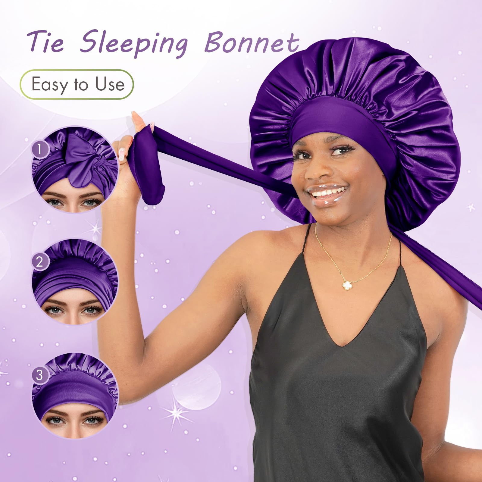 Quality material: Bonnet part is made of good texture purple silky satin, which is breathable and smoothy, and can keep hair moisture too. Long band is made of stretchy spandex material, comparing common elastic band Bonnet, this Bonnet wouldnot make you feel tight and leave imprint on head, and much more cosy.