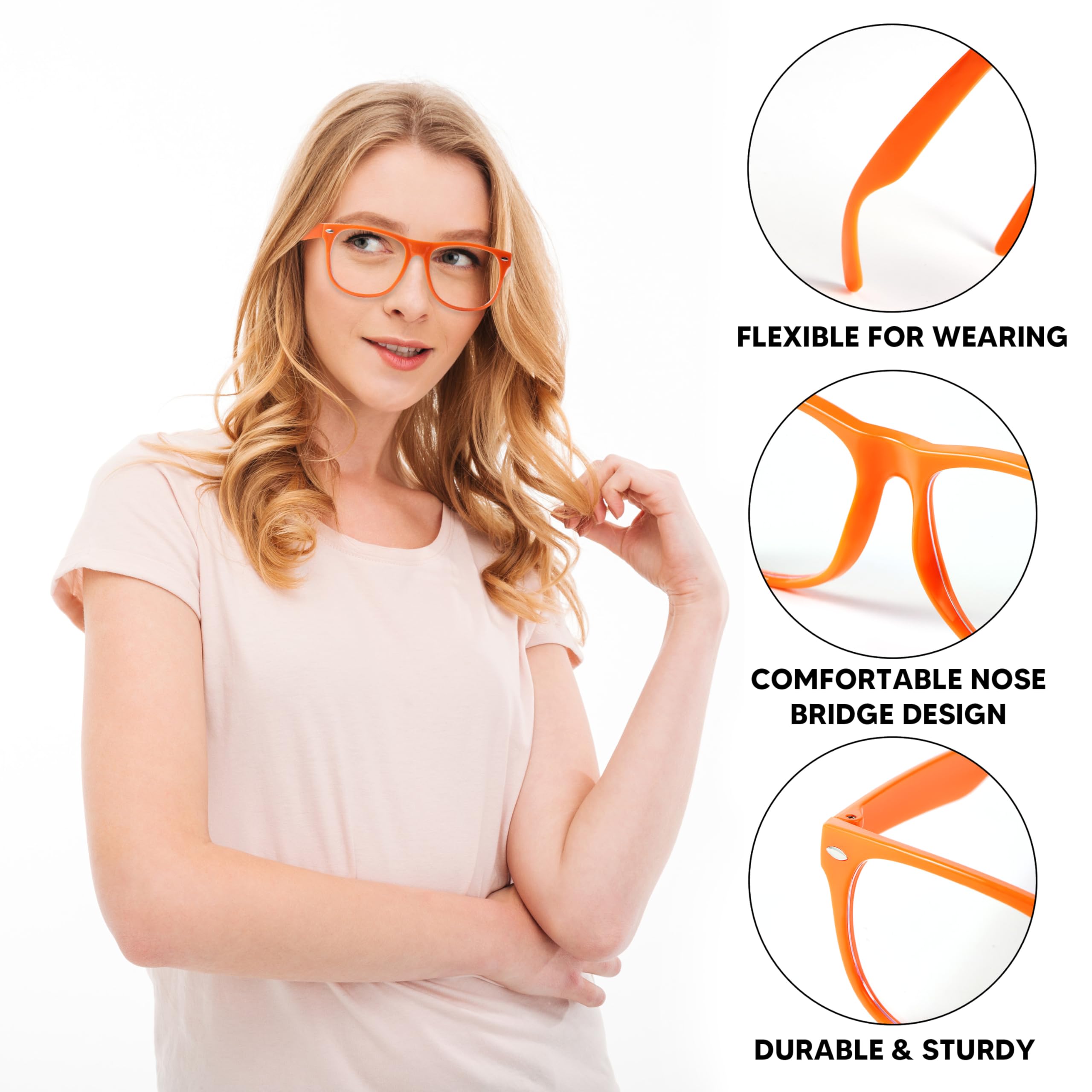 Perfect for Halloween. Our Halloween Nerd Costume Glasses include one Orange costume glasses that you may wear every day. Perfect for fun Halloween trick or treat events, dress-up, role play, and Halloween classroom parties.