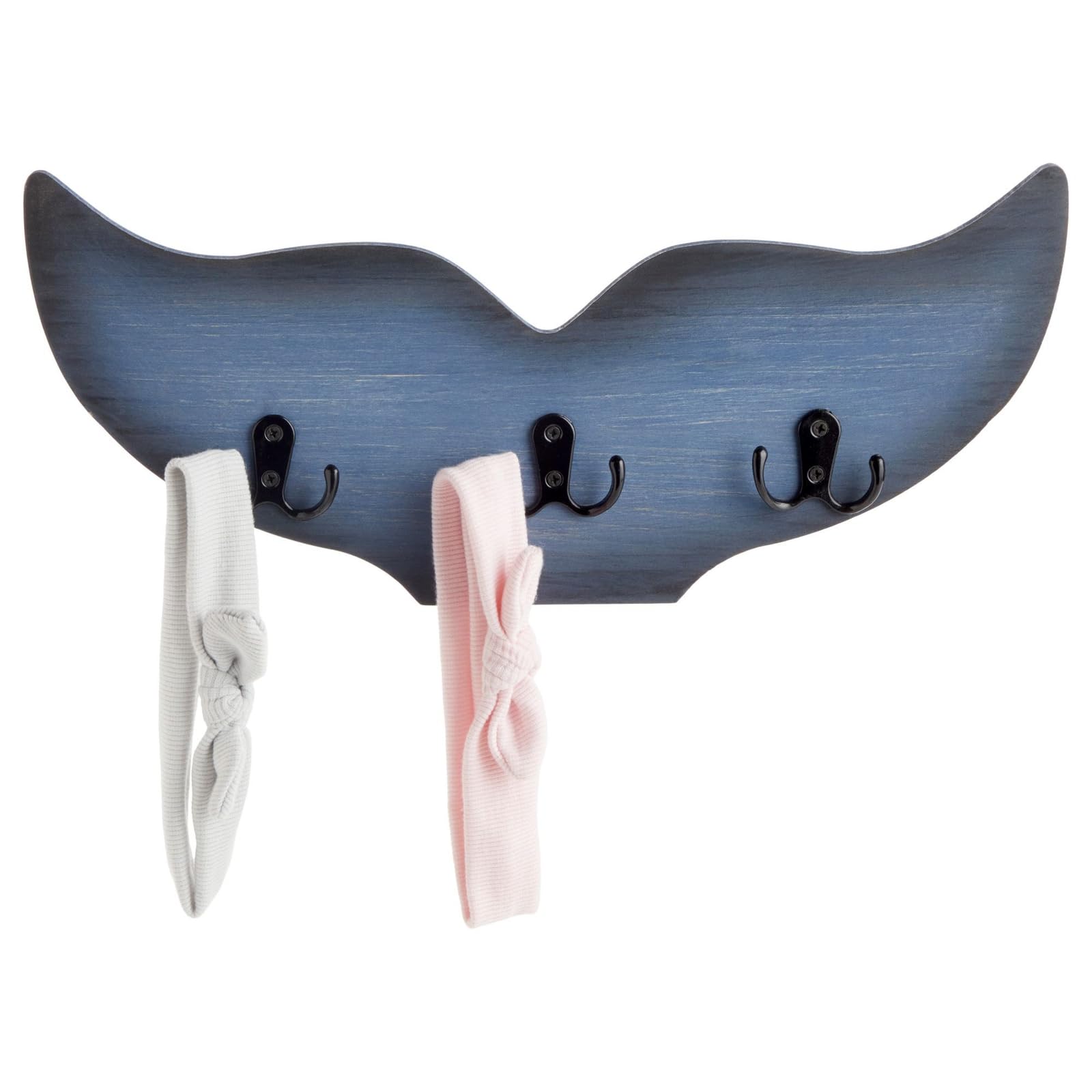 Enhance your coastal decor with the Okuna Outpost Whale Tail Wall Hook, a unique and charming addition to any ocean-themed space. This decorative hook features a whimsical whale tail design with a distressed nautical blue finish, making it an ideal choice for ocean-themed kids rooms or nautical bathroom decor. Crafted from durable medium-density fiberboard, this whale wall hanger is built to last, adding a touch of ocean whimsy to your home. As the cooler months approach, the Whale Tail Wall Hook is perfect for organizing scarves, hats, or coats in an entryway, blending functionality with style. Versatile and practical, these decorative wall hooks can also hold towels in a beach decor setting or serve as a key hook wall mount in a coastal-themed kitchen. The three double hooks provide ample space for hanging various items, making it perfect for an ocean-themed nursery or bedroom decor. Ideal for families or individuals who appreciate a touch of the sea in their decor, these whale tail hooks bring the serenity of the ocean into living spaces. Whether used in a child's ocean-themed bedroom or as part of a nautical decor collection, these hooks offer both practical storage and a decorative element. Easy to mount with two triangular hooks on the back, the wall hook can be securely installed on concrete, brick, or wood surfaces. Included with your purchase is the whale tail hook itself, offering a reliable solution for organizing your space without the need for additional hardware. While not included, consider pairing it with complementary beach house decor or ocean wall decor to complete the look. Easy to clean and maintain, this coastal wall decor piece is a delightful memento of the sea, perfect for everyday use. Ideal for a child ocean bedroom or any space seeking a nautical flair, the Okuna Outpost Whale Tail Wall Hook is a stylish and versatile addition to your home.