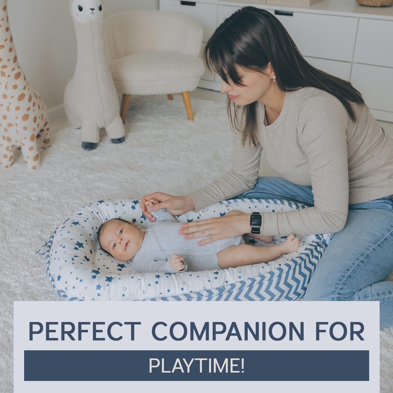Gentle Comfort for Your Baby – Designed with ultra-soft 100% organic cotton and breathable materials, the Aila + Aiden baby lounger offers a cozy space for daytime use, tummy time, diaper changes, and bonding moments.