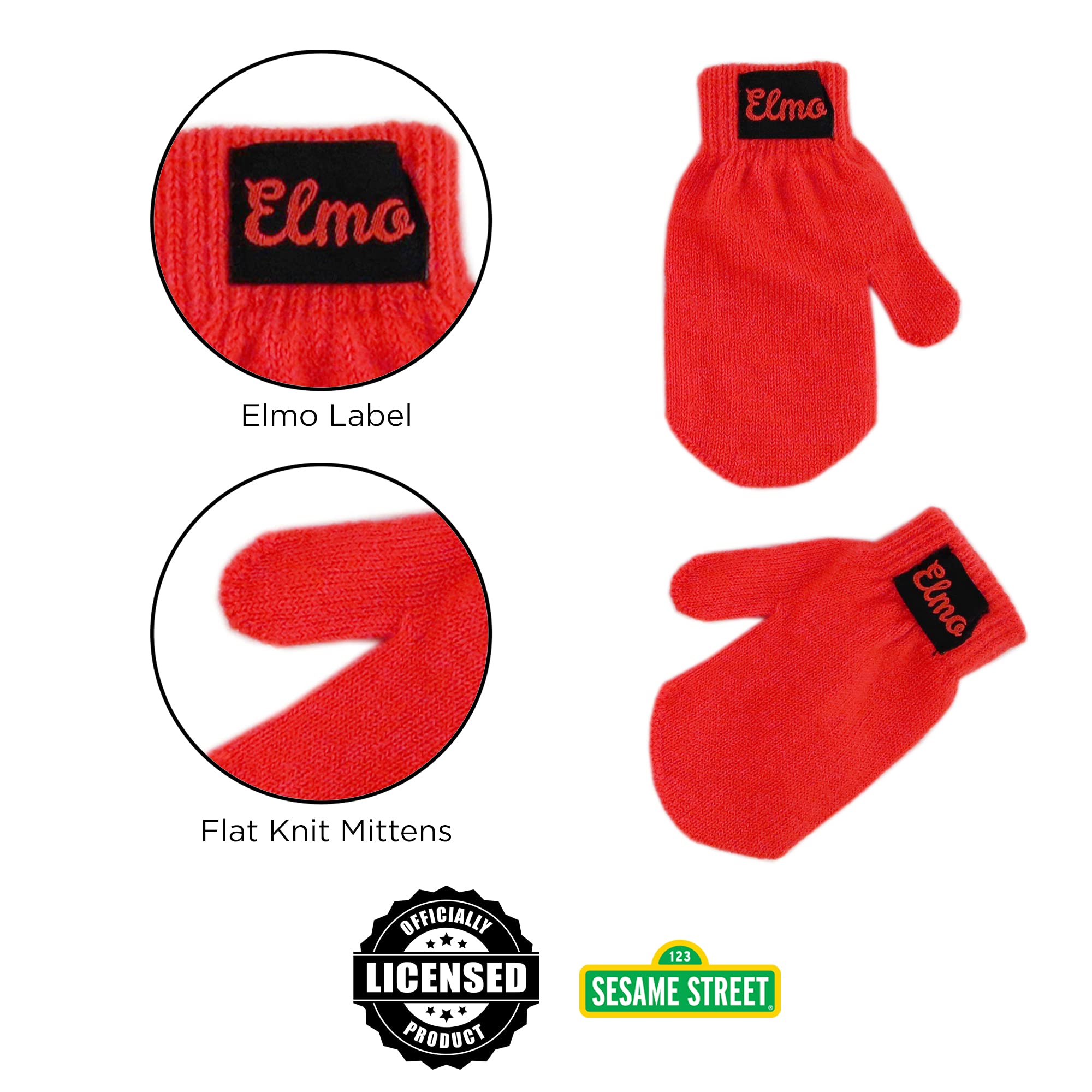 Sesame Street Boys Winter Accessory Hat and Mittens Set, Elmo Toddler Beanie and Mittens for Kids Ages 2-4, Red/Black