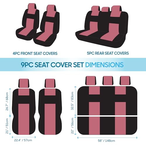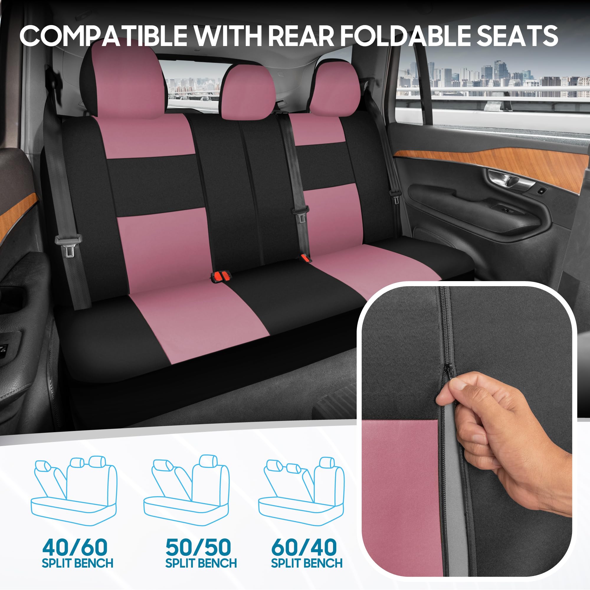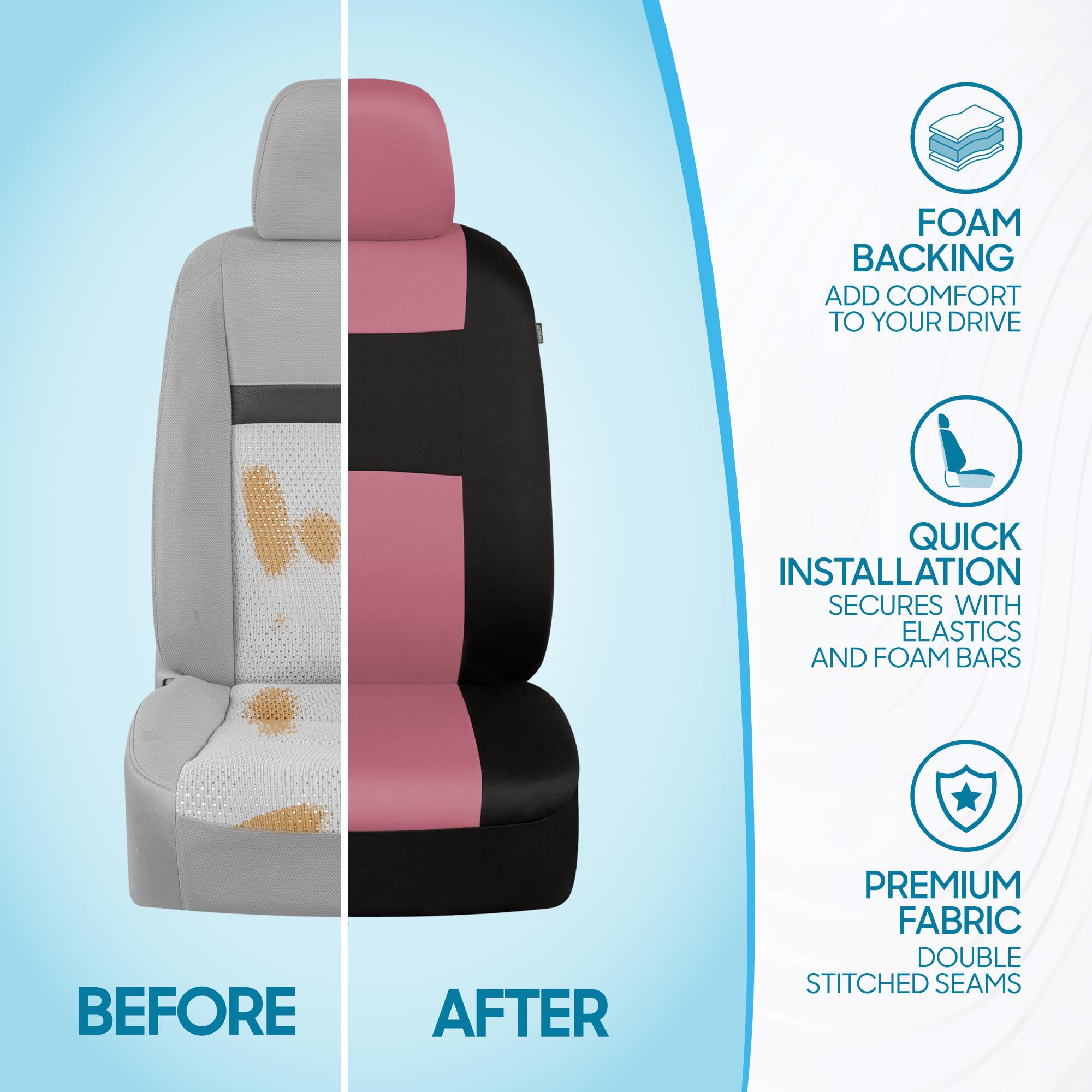 STYLISH MODERN DESIGN: Refresh your ride with a sleek, contemporary look. Our full set of seat covers features a bold two-tone design with detailed stitching, adding a pop of color and personality to your interior. Itโs an instant upgrade that turns heads and transforms your carโs vibe from ordinary to eye-catching.