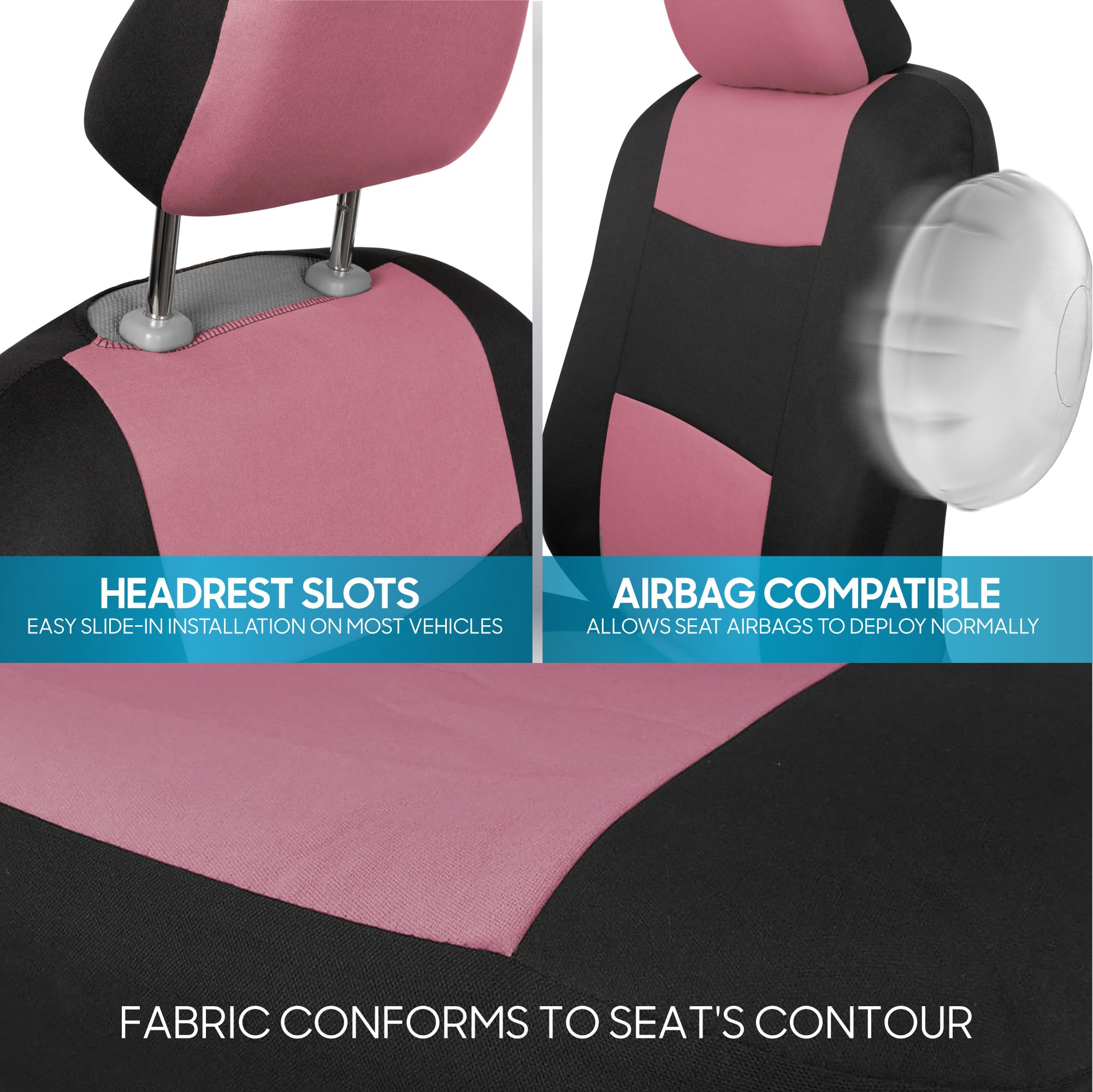 UNIVERSAL FIT FOR MOST AUTOS: Our seat covers are designed to provide a snug and stylish fit for the majority of cars, trucks, vans, and SUVs. They are compatible with most vehicles that feature adjustable or removable headrests. Please note: these seat covers are not compatible with seats that have molded (non-adjustable) headrests, integrated seatbelts, or built-in armrests on the front seats.