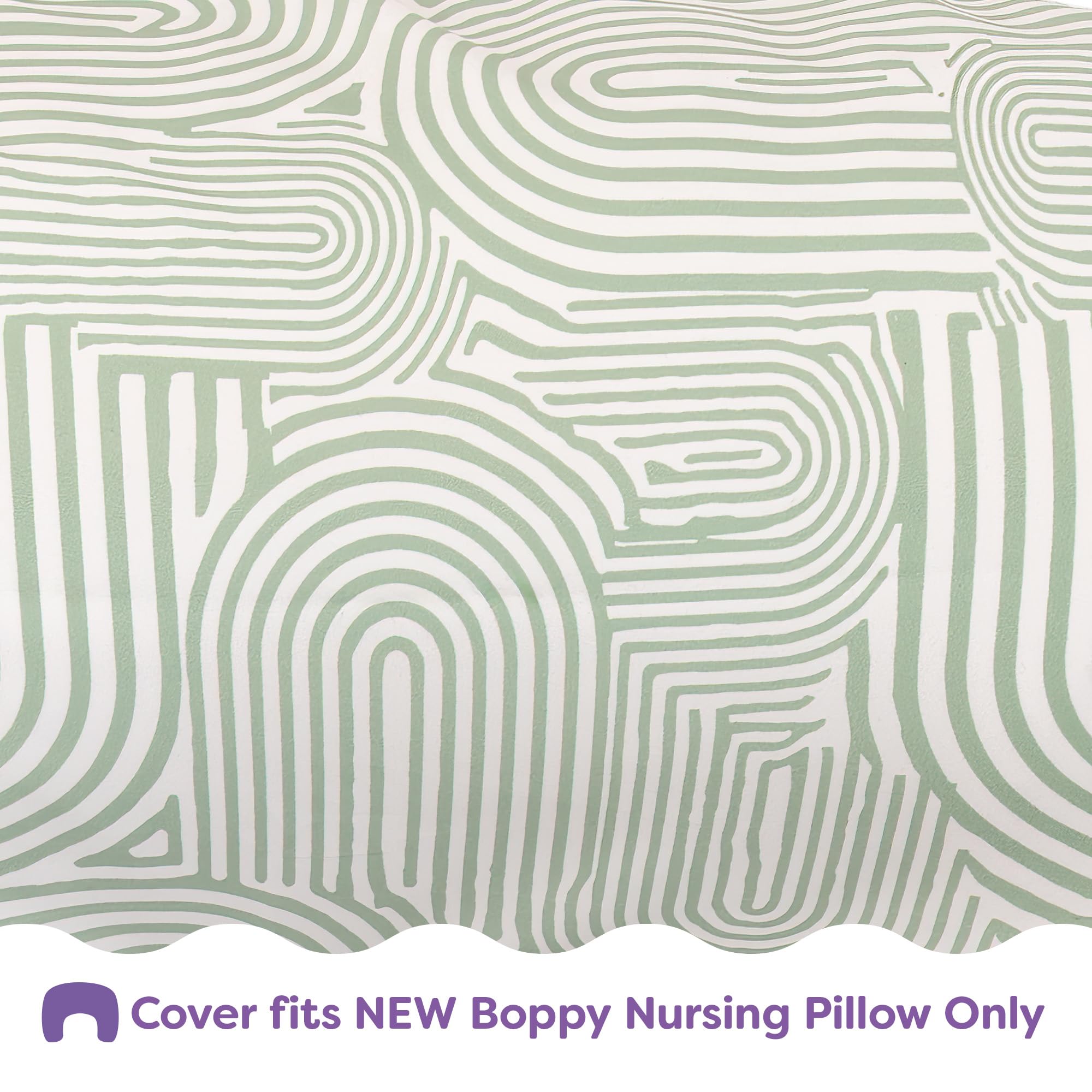 The Boppy Nursing Pillow Cover in Sage Green Retro Arches is made from 100% polyester microfiber for a soft surface suitable for daily use. Designed to fit the redesigned Boppy Nursing Pillow, the cover includes a hidden zipper and a contoured shape to help maintain a secure fit. It is machine washable and dryer safe for easy cleanup. The soft green pattern adds a simple, modern element to a feeding space or nursery.