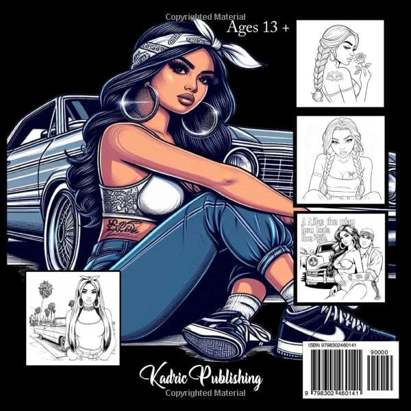UPDATED MAY-2025-NO MORE DUPLICATES This adult coloring book, Homegirls, is designed for ages 13 and up, celebrating Chicana women's bold spirit and resilience. Each page features intricate illustrations of strong, confident chola women, adorned with streetwear styles, from fierce hairstyles to iconic Lowrider fashion, the book invites users to explore their creativity while embracing themes of empowerment, community, and individuality. Perfect for teens and adults who appreciate Chicano culture, this coloring book offers a therapeutic escape into a world of strength, style, and self-expression. 46 Unique pages to color. No duplicates 8.5 x 8.5 square Coloring Book Single side white pages No duplicates Adult Coloring