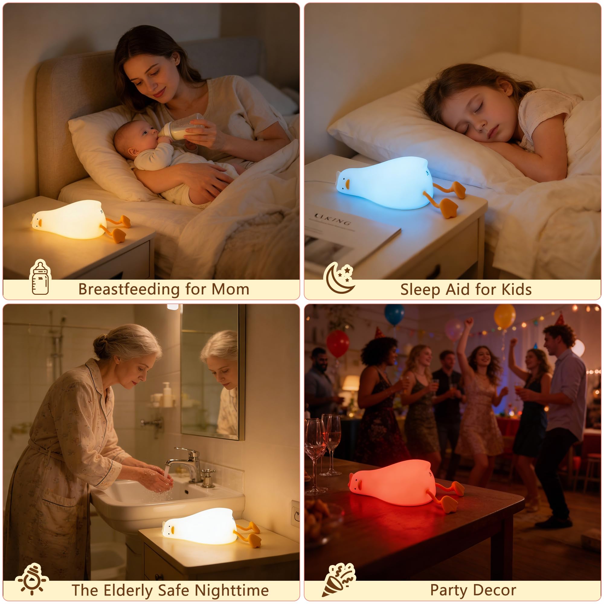 100% Safe for Babies/Kids/Toddlers/Pregnant Moms: Made from non-toxic, BPA-free silicone,soft duck night light Its squishy, water-resistant, and drop-resistant design ensures durability, this silicone duck nightlight does it all , soft glow aids breastfeeding moms, guides seniors safely at night, students study for late-night without disturbing roommates. It's also a children's room decor essentials ,Durable silicone withstands drops, silicone nursery lamp making it perfect for active toddlers