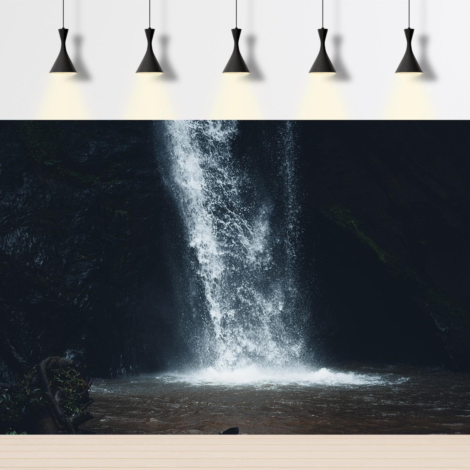 Waterfall Aquarium Background Waterfall in Dark Black Backdrop Terrarium Backgrouds Stream Falls Theme Fish Tank Background Cascading Waterfalls Reptile Tank Enclosure Backgrounds Wallpaper 36x20in