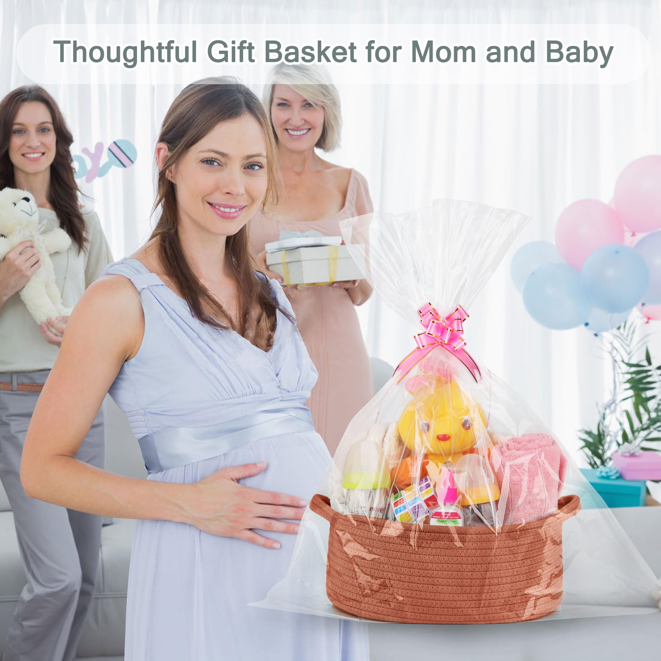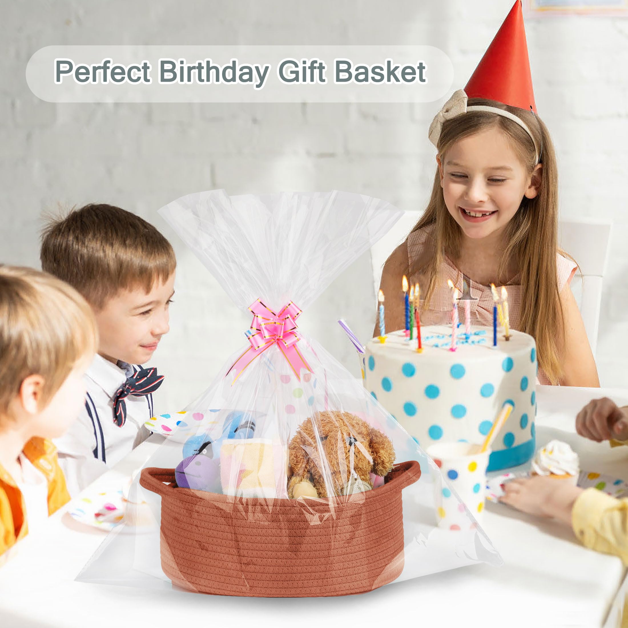 【Best Gift Options】 Our woven gift basket comes with one clear cellophane bag and three ribbons of different colors, which is very convenient for making gifts. It is a perfect choice for Birthdays, Baby Showers, Mother's Day, Father's Day, Valentine's Day, Graduation Gifts, Easter and Christmas. This small storage basket itself is a great gift.