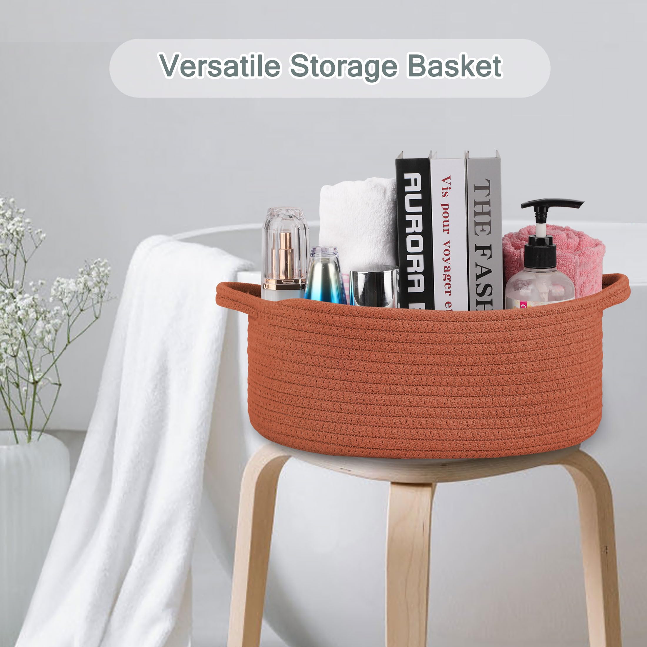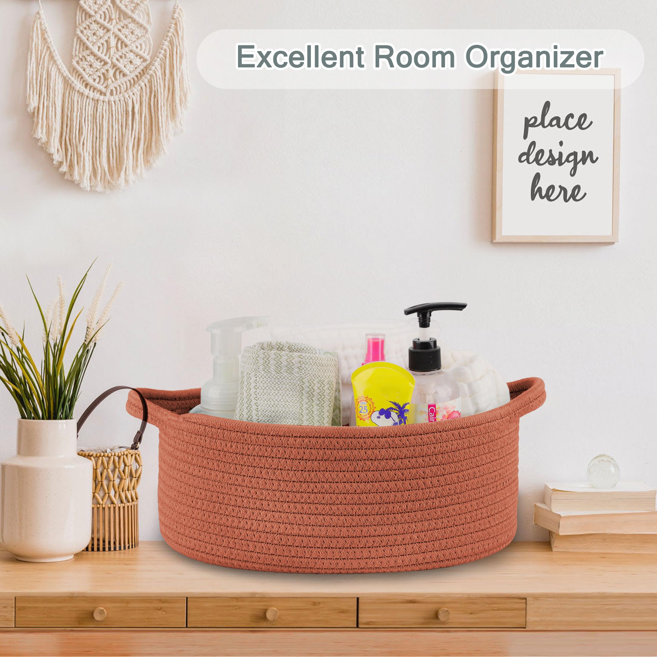 【Versatile Storage Basket】 Our rope storage basket is the perfect organizer for keys, wallets, diapers, books, remotes, toys, makeups, and more. You can use it as a baby basket, end table basket, shelf storage basket, office desk basket, basket for bathroom, kids' toy basket, book basket, shallow basket, and more. It can also be used as a pet toy basket for cats and dogs.