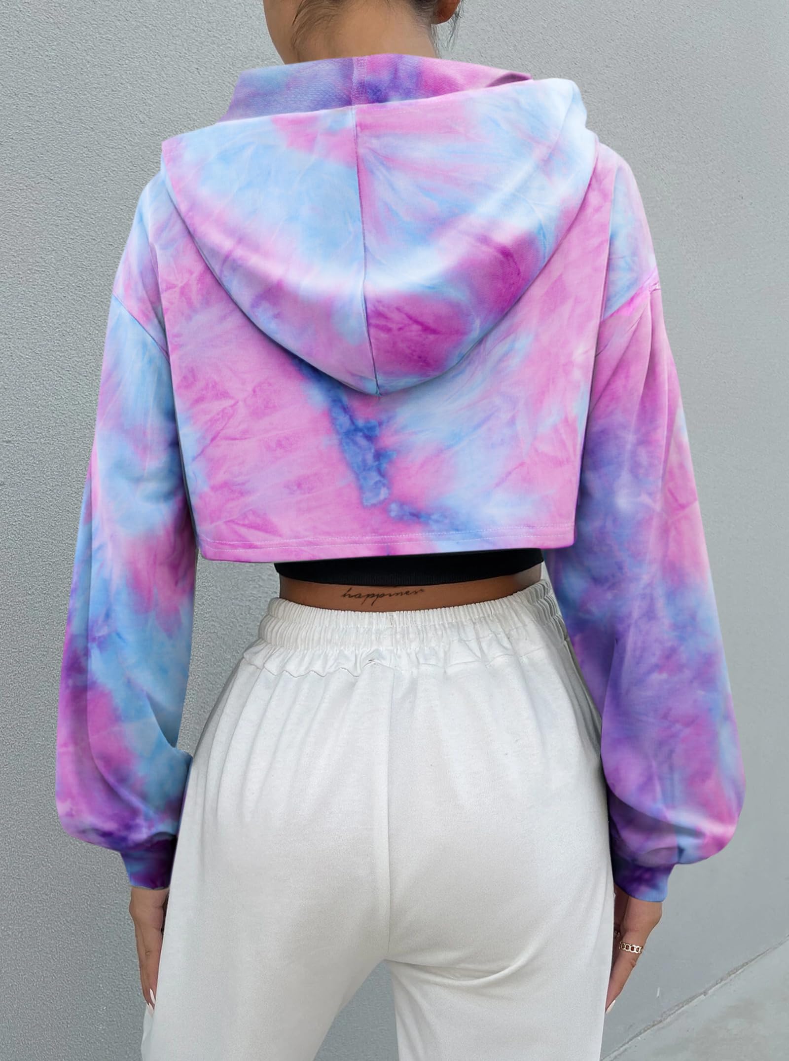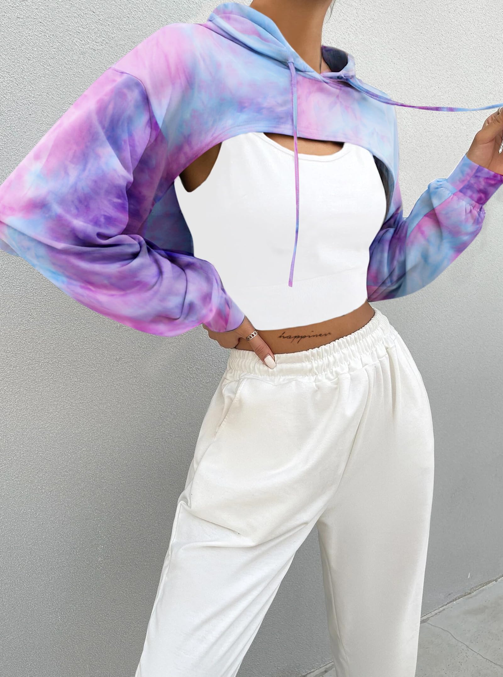 FEATURES: Crop hoodies for women, long sleeves, cropped length, tie dye, drop shoulder, loose fit, drawstring hooded, one piece, workout crop tops for women
