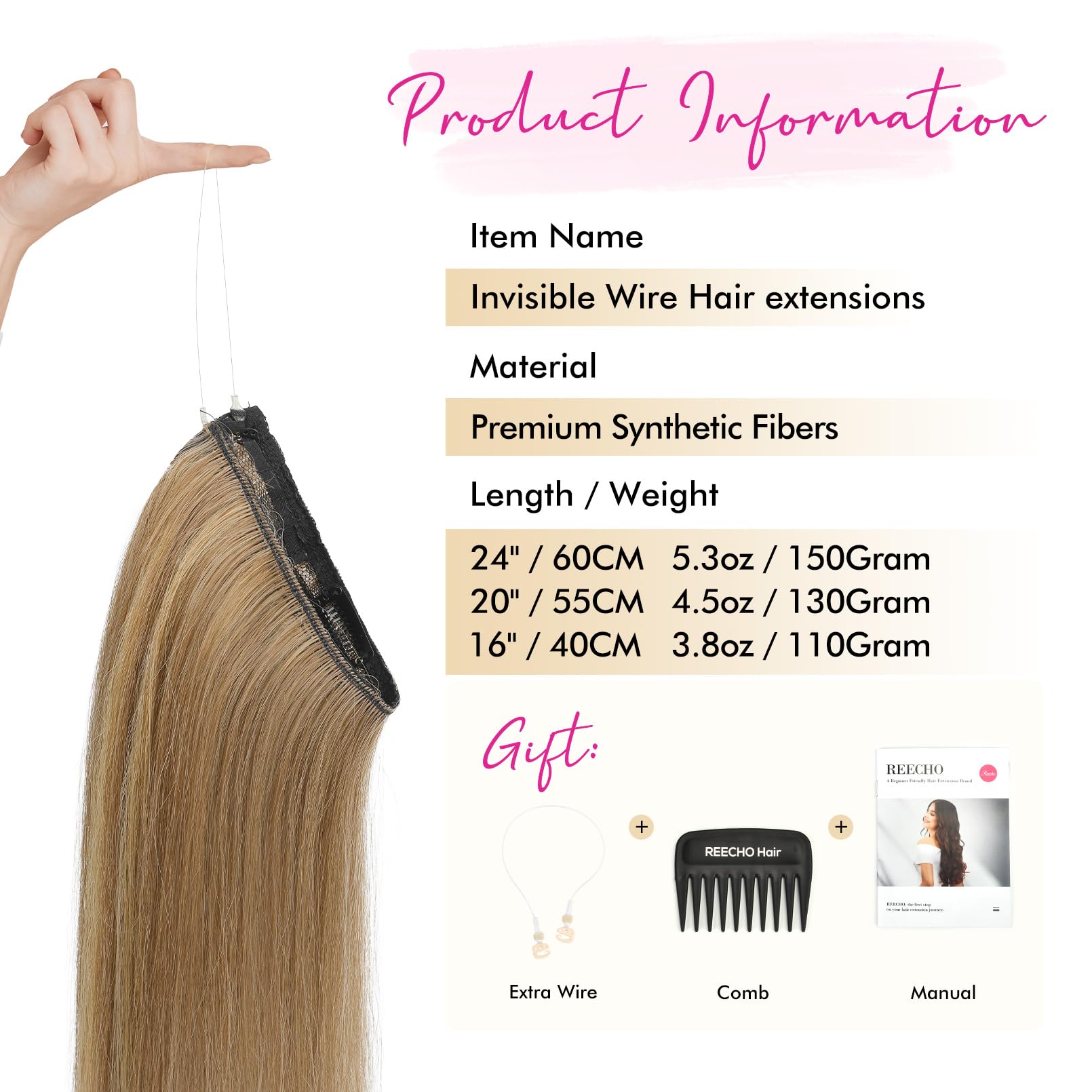 Easy to Apply: No tape, no glue, no sew, only need to position the easy wire hair extensions over your hair like a headband, taking less time for instantly thicker and longer hair without extra help in few minutes