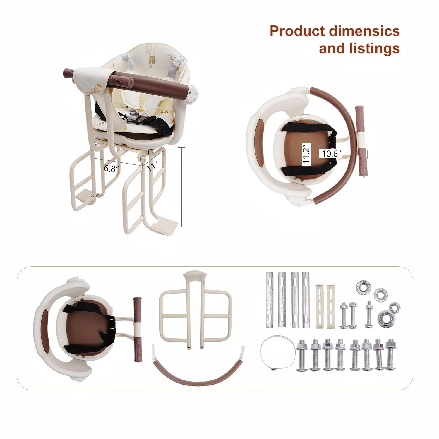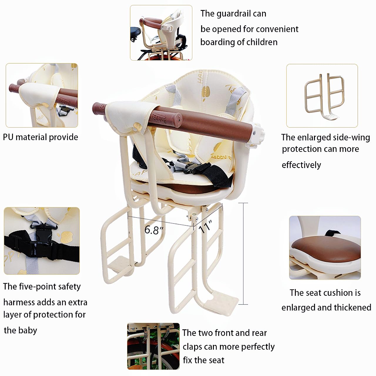 【Excellent Safety Design】The baby bike seat enclosed guardrail with seat belt design with thickened cushion and backrest,which can make sure to enjoy the ride with your child in a safe comfortable conditions and explore the scenery together.
