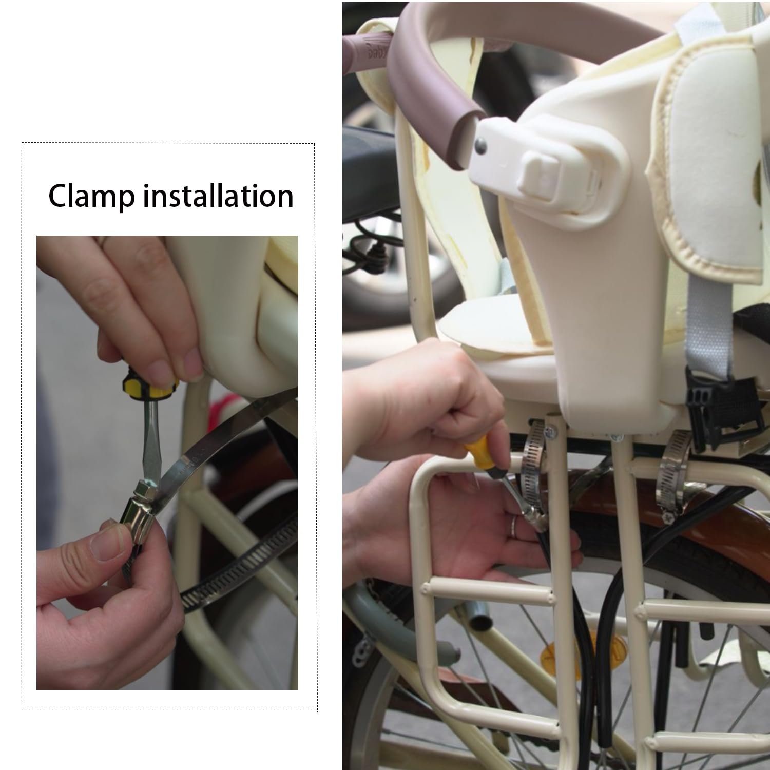 【Additional Gift】There are two adjustable clamps, which are designed to add another layer of fixed seat function to the child seat. This can solve all unsafe factors and provide parents and children with a beautiful and safe journey.Note: Please tighten each screw for more safety and stability.