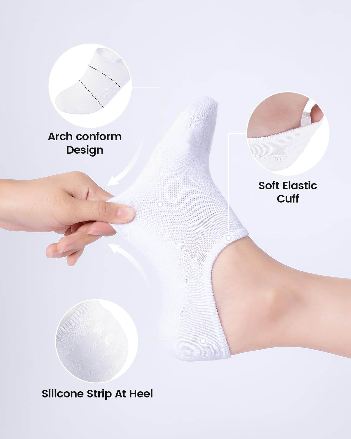 Premium Material for Comfort:Crafted from a blend of soft and breathable fabrics, including cotton, spandex, and polyester. The cotton offers natural breathability, keeping your feet fresh throughout the day. Spandex provides just the right amount of stretch, ensuring a snug fit, while polyester adds sturdiness to withstand daily wear.