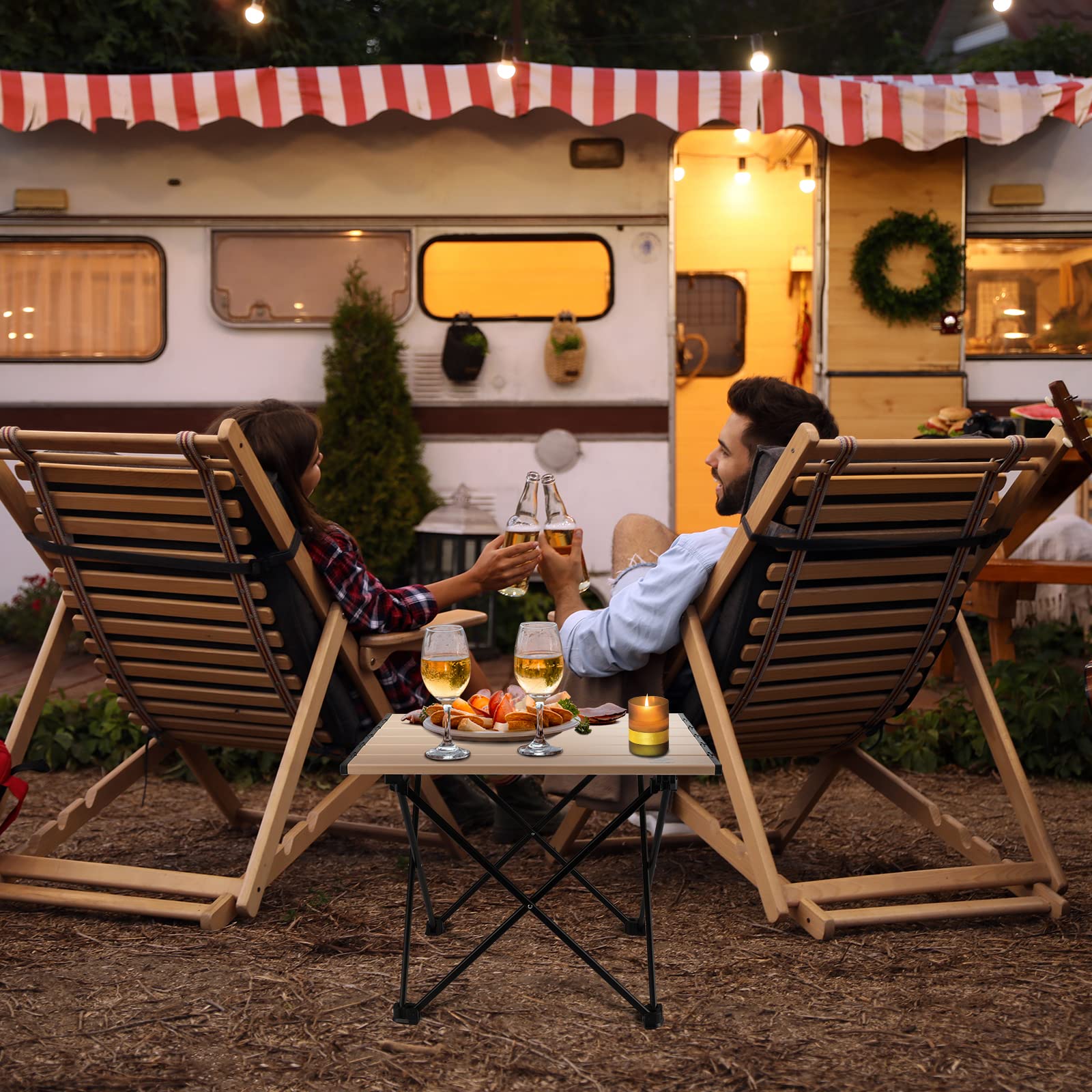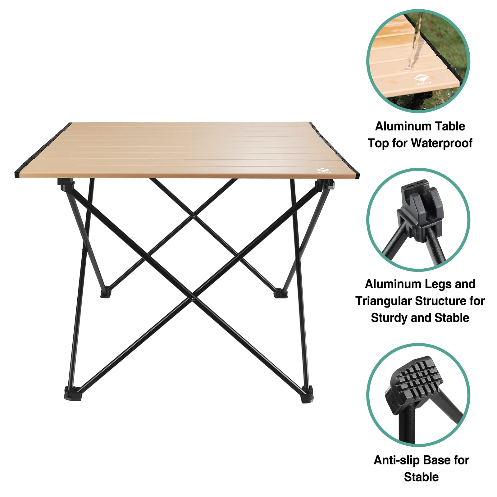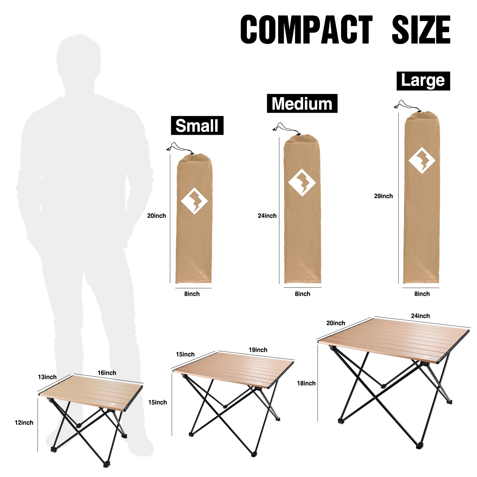 Ultra-light for Easy Portability: Our folding camp table's top and frame are all made of aluminum, so it's lighter than another comparably-sized wooden camp table, only 3.96 lbs, light enough to carry anywhere. Folds into the included carry bag. This small foldable table can easily fit in the back of a car, RV, motorcycle
