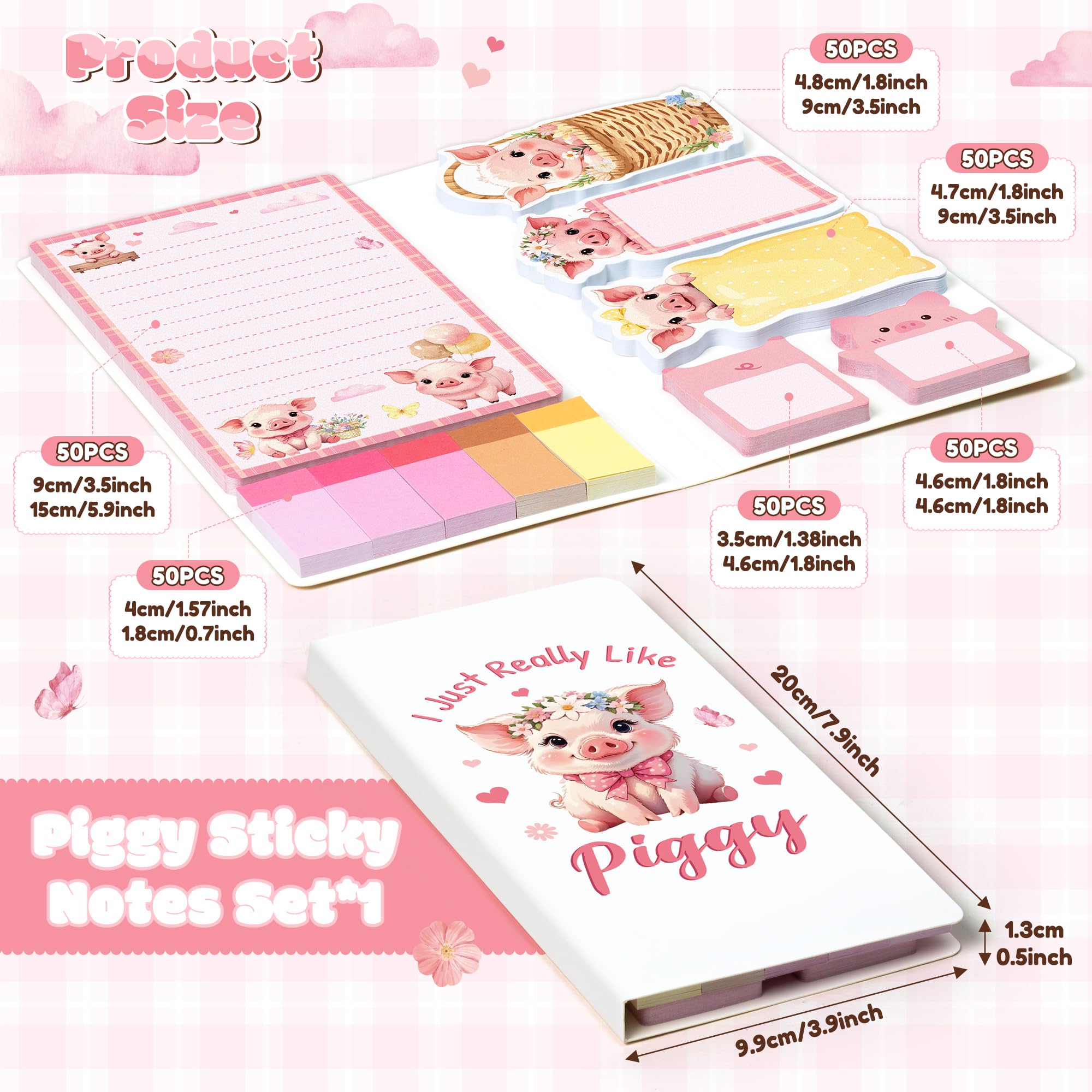 Package: You will get a set of piggy sticky notes, including many self-adhesive note pads in different styles and sizes. 50 sheets per pad, 550 sheets in total, meet your various needs. And the sticky notes set is in suitable size, very easy to carry
