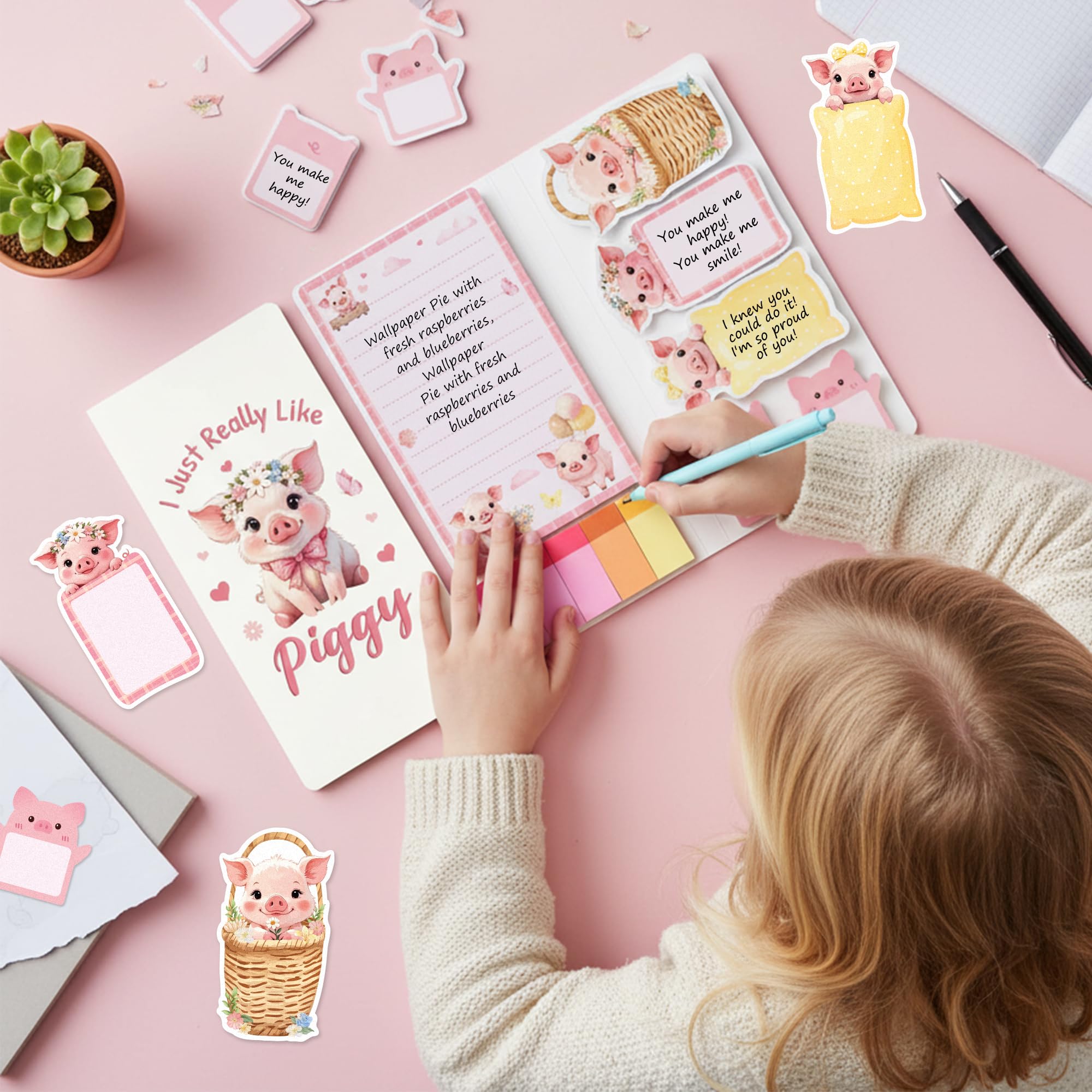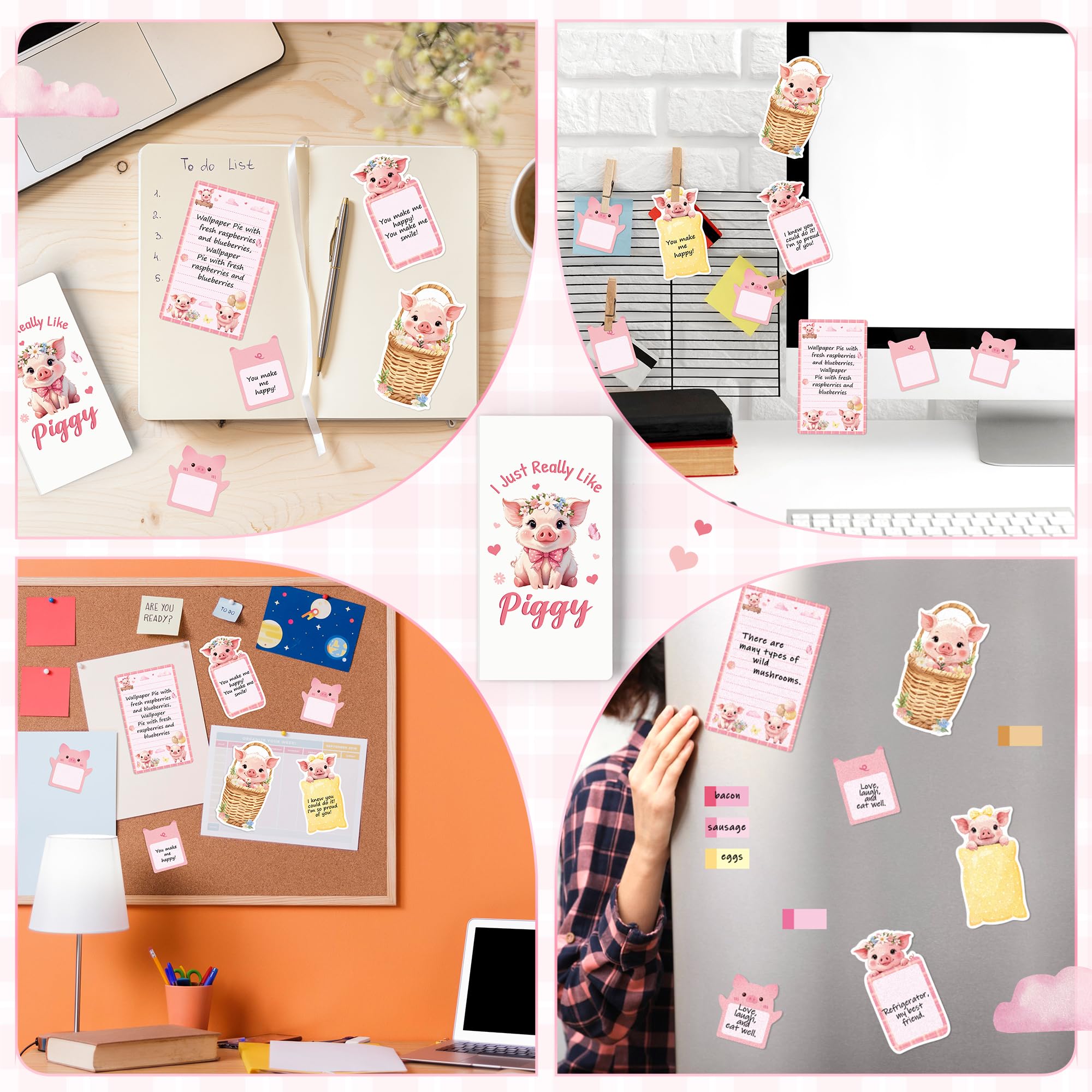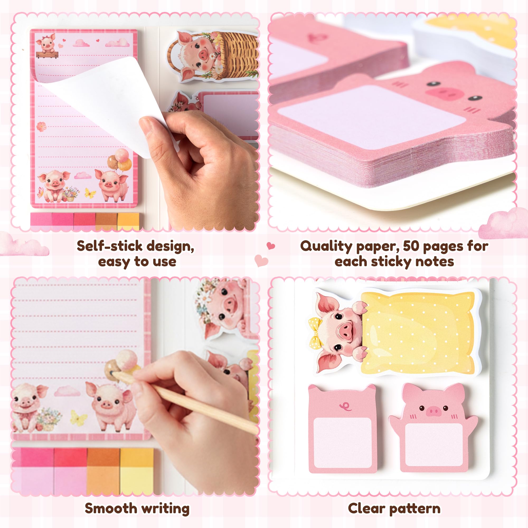 Material: The piggy self-stick notepads are made of paper with soft surface, easy to write, long-lasting color, good stickiness. They can be used multiple times and without leaving glue when you remove them