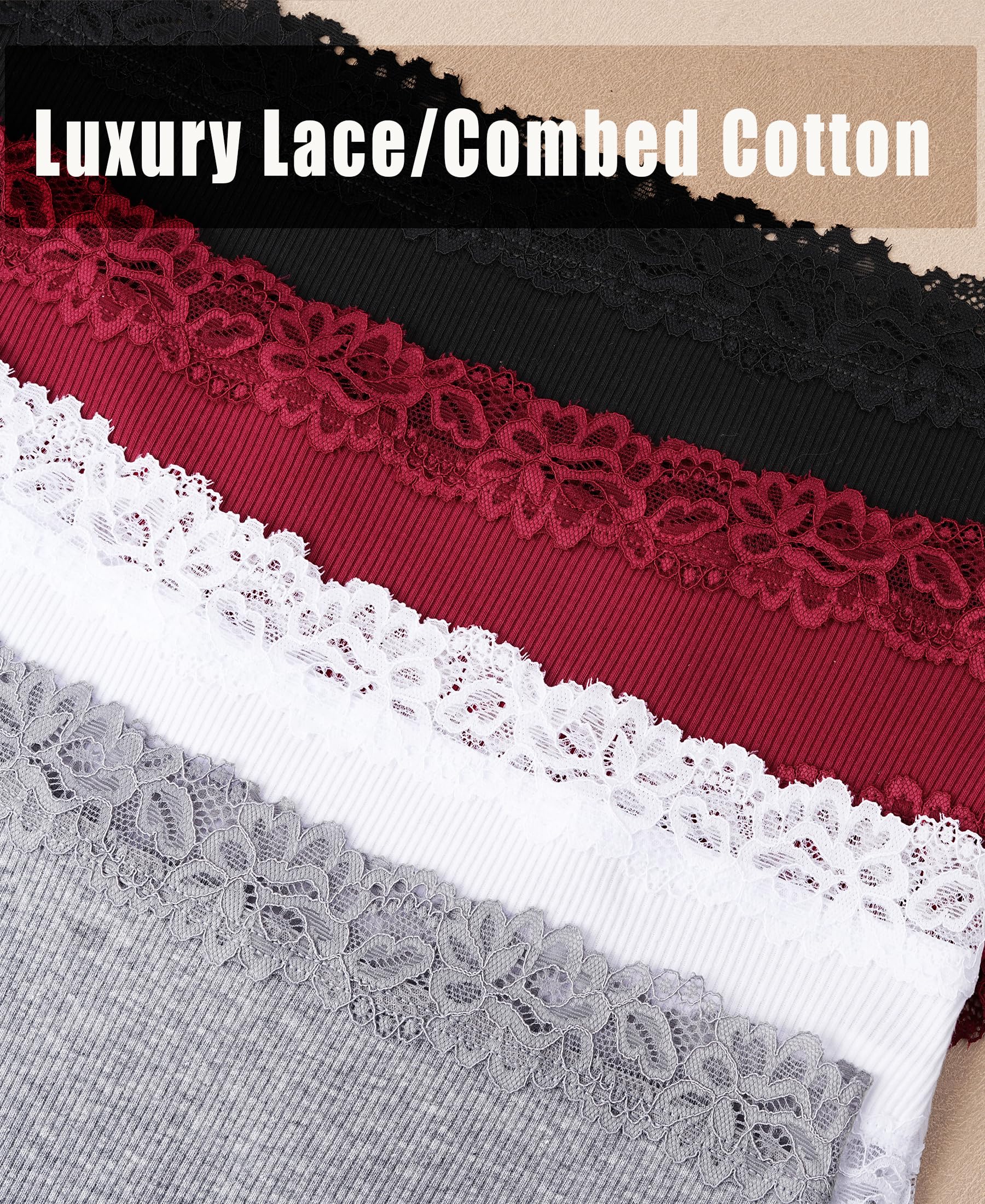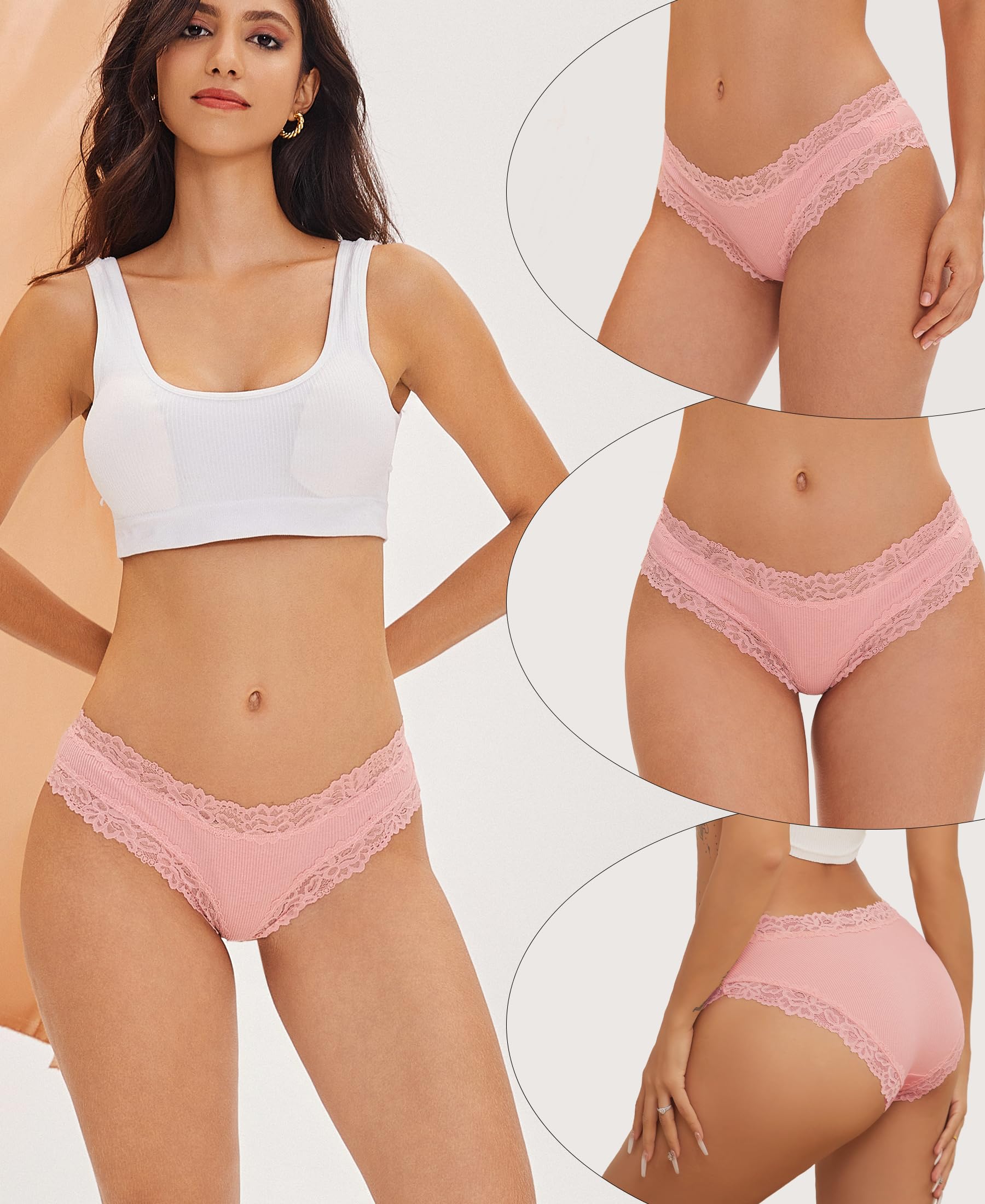 Cotton Underwear for Women : The panties made by 95% PREMIUM COTTON, 5% spandex. Crotch inner lining: 100% cotton. Comfortable and breathable fabric skin-friendly; Super cute Lace waist, great for girl and mommy, 6 pack lovely set of colors, great for everyday wear.