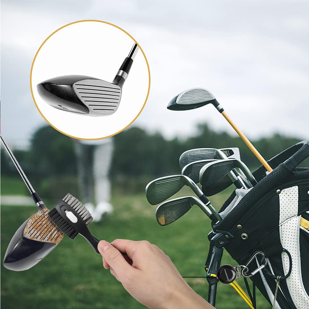 【Oversized Brush Head & Super Cleaning Power】Double Brush Heads -THIODOON golf club brush head is composed of nylon bristles and steel wire bristles, and the area is 2.5 times that of ordinary golf brush heads. This means that this golf club cleaner has a larger contact area with the club during cleaning, Saving time and effort. The golf brush and groove cleaner can hide them when not in use, Providing excellent safety and protecting the golf bag from scratches.