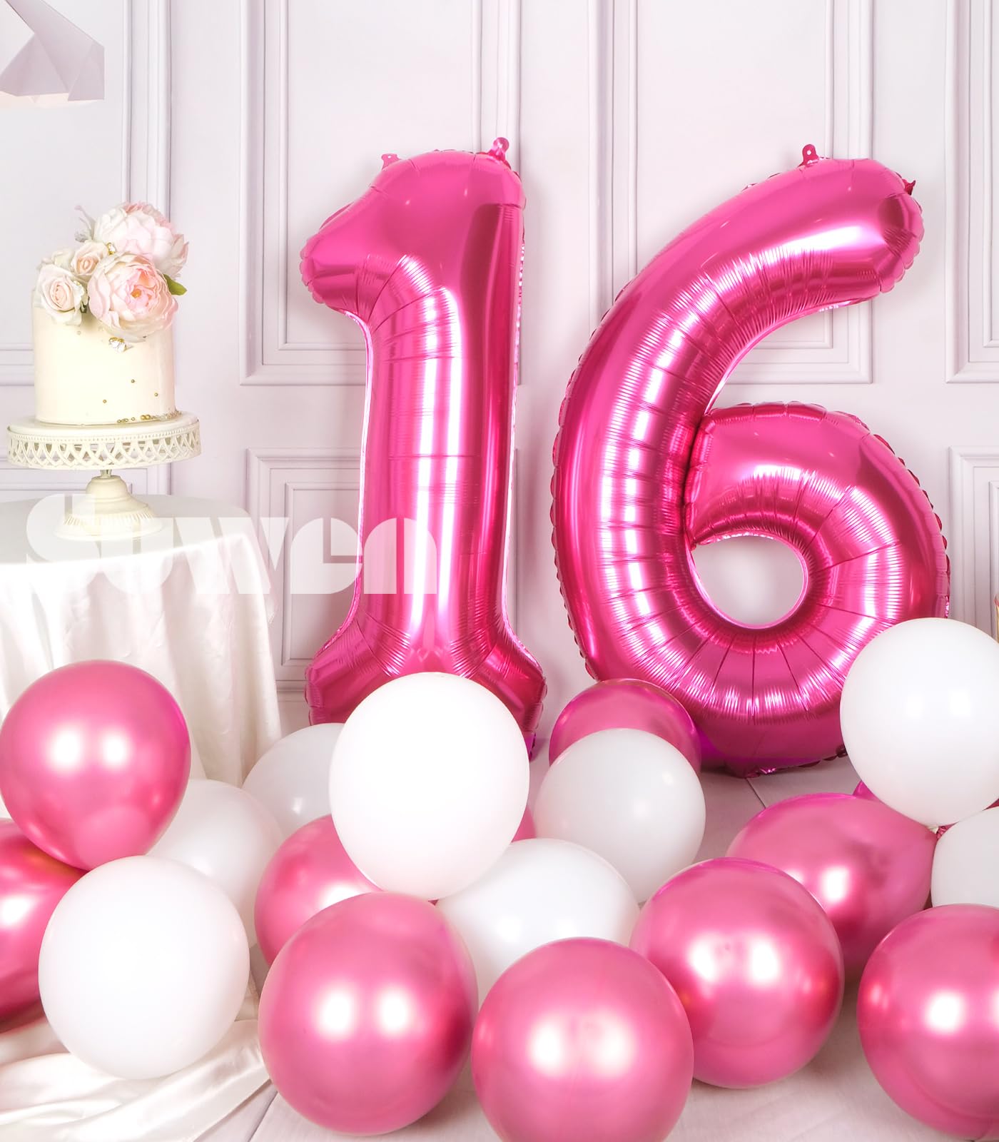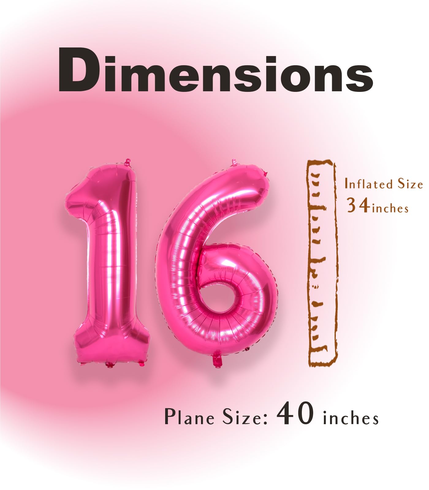 [ Jumbo Sized ] - SUWEN provides 40 inch 0-9 giant hot pink number balloons. This package contains hot pink numbers 16 foil balloon, and an inflatable straw to make inflation and deflation more convenient