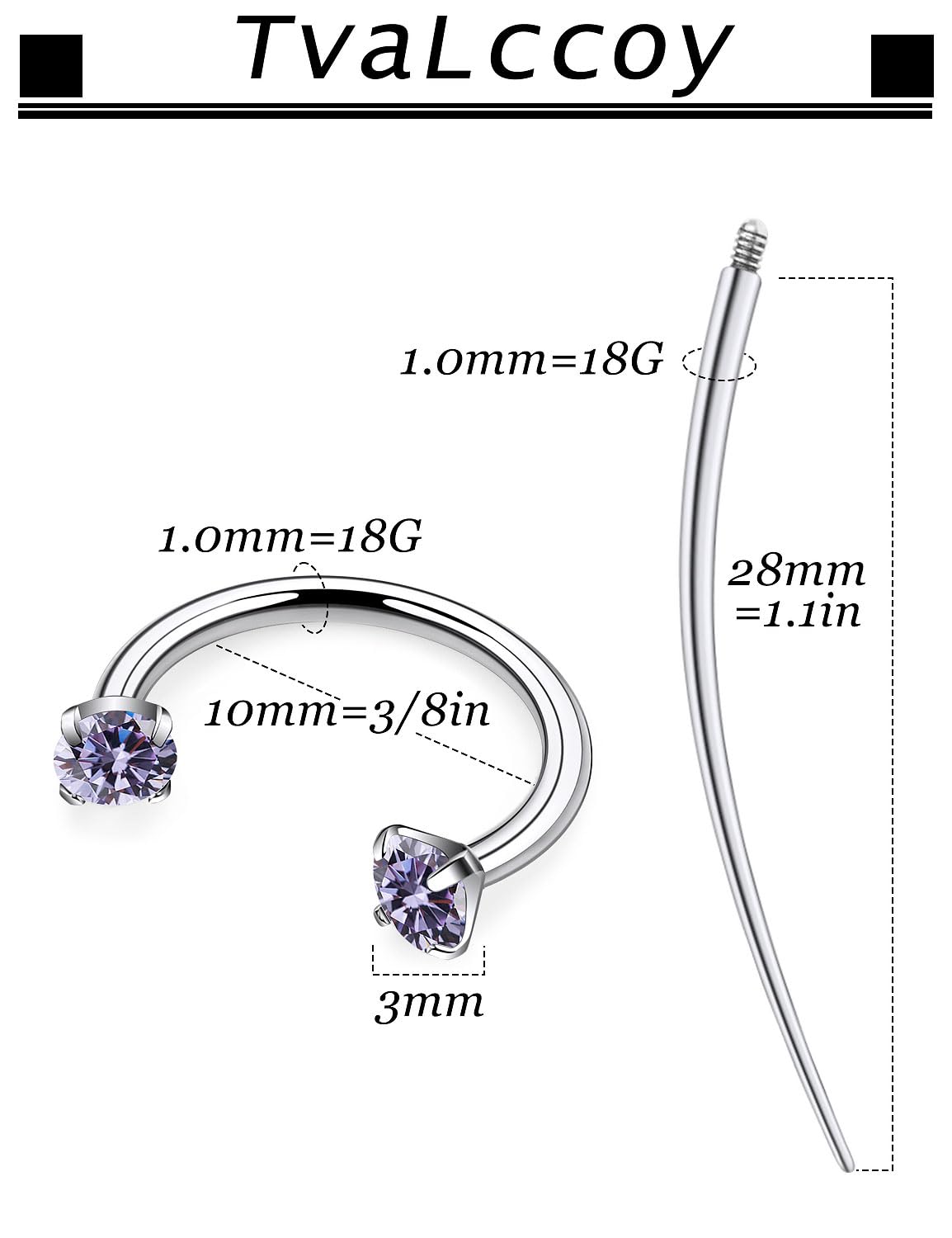 Dimension: All piercing jewelry is 18G=1.0mm, Inner diameter is 3/8in=10mm, Ends Diameter: 3mm.