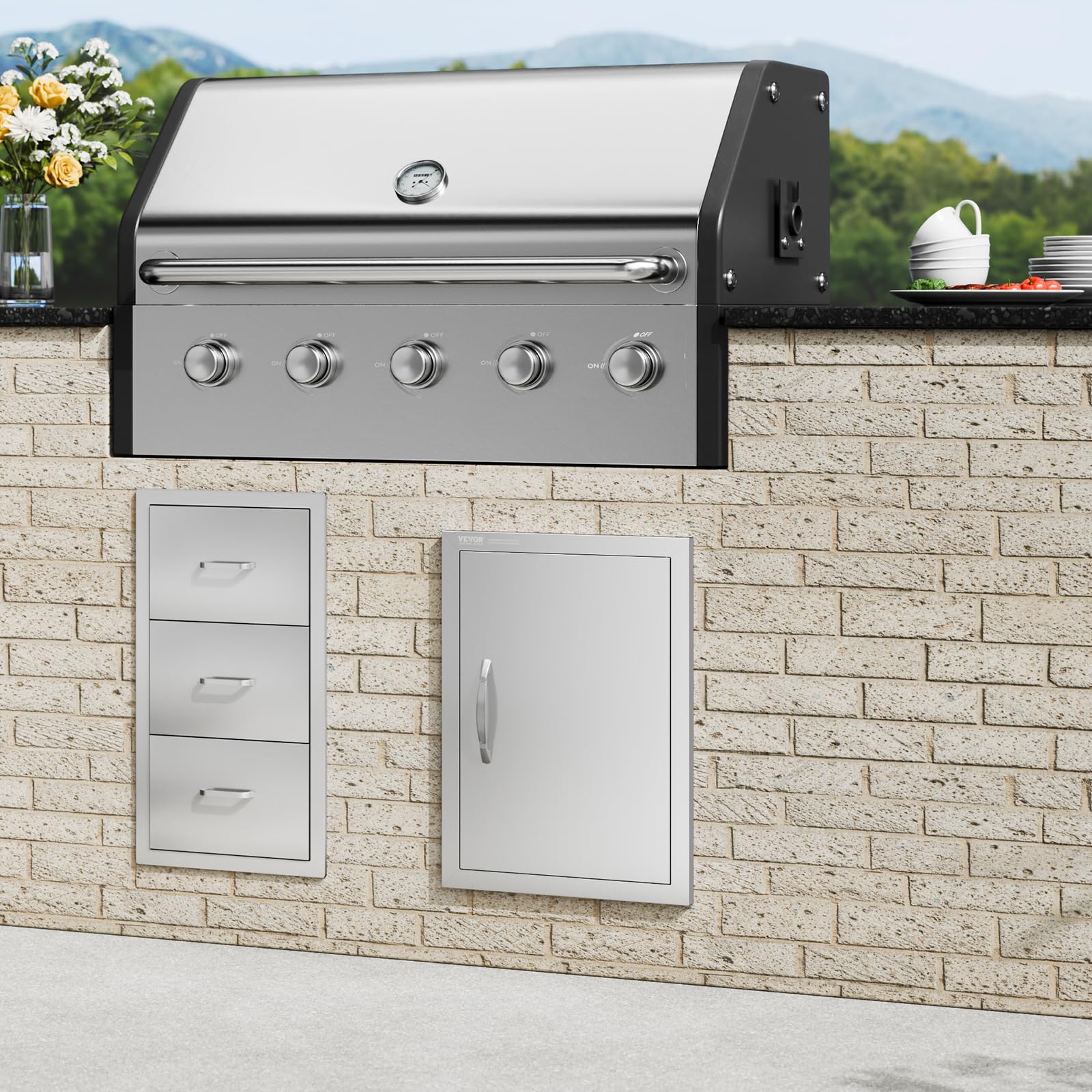 Precision Opening: Overall dimensions: 407x559x46 mm / 16x22x2 inches, installation size: 13x19inch/321x474mm , it is recommended to reserve an additional 0.08inch/2mm on this basis for better operation. The door is designed specifically for outdoor kitchens and barbecue islands. With precise dimensions, it is easy to process, install, or dismantle. Available in various sizes and styles, it is perfect for indoor/outdoor kitchens and all other outdoor weather conditions.