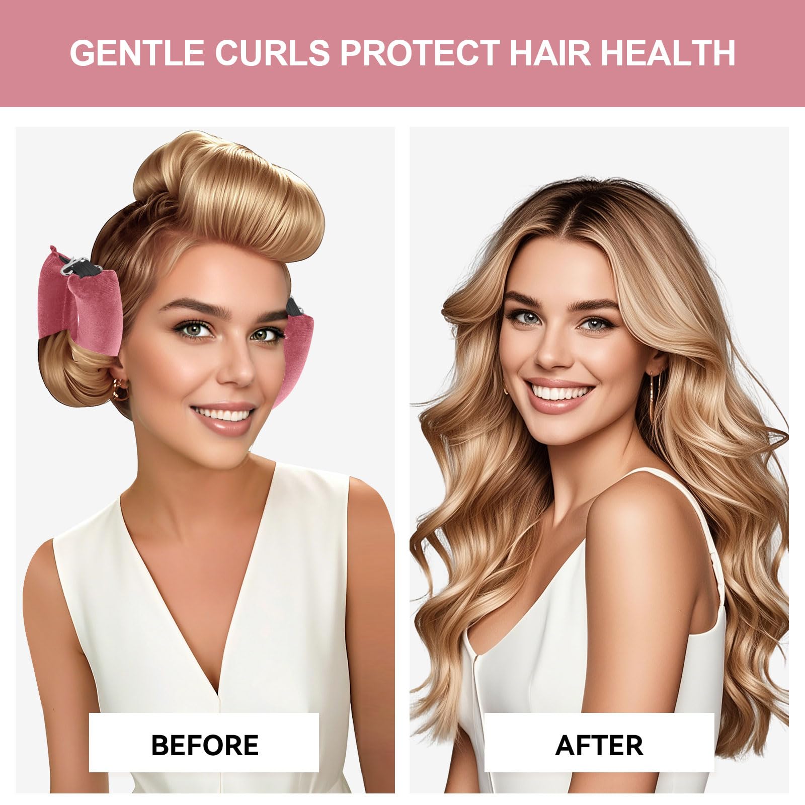 Sleep Friendly Curling Rod: These heart-shaped curlers feature upgraded hook-and-lock technology, ensures stay firmly in place while you sleep. The pillowy velvet surface prevents hair from snagging and provides maximum comfort for side/back sleepers