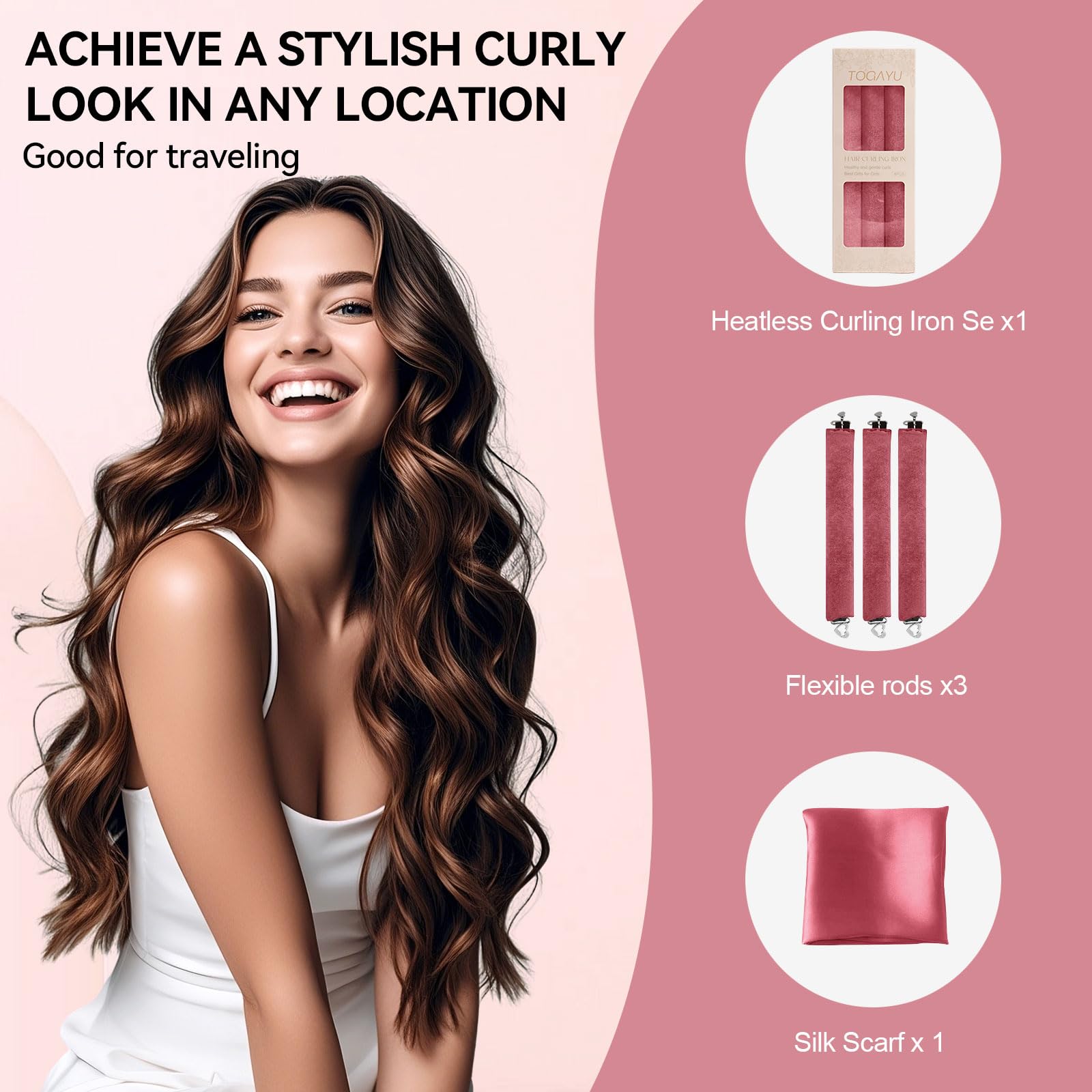Travel 3pcs Set with Silk Scarf: Includes 3 extra-large curling irons and a luxurious satin scarf, lightweight and portable design keeps curls in place while working out, traveling or on business, refreshes hair and is ideal for everyday styling