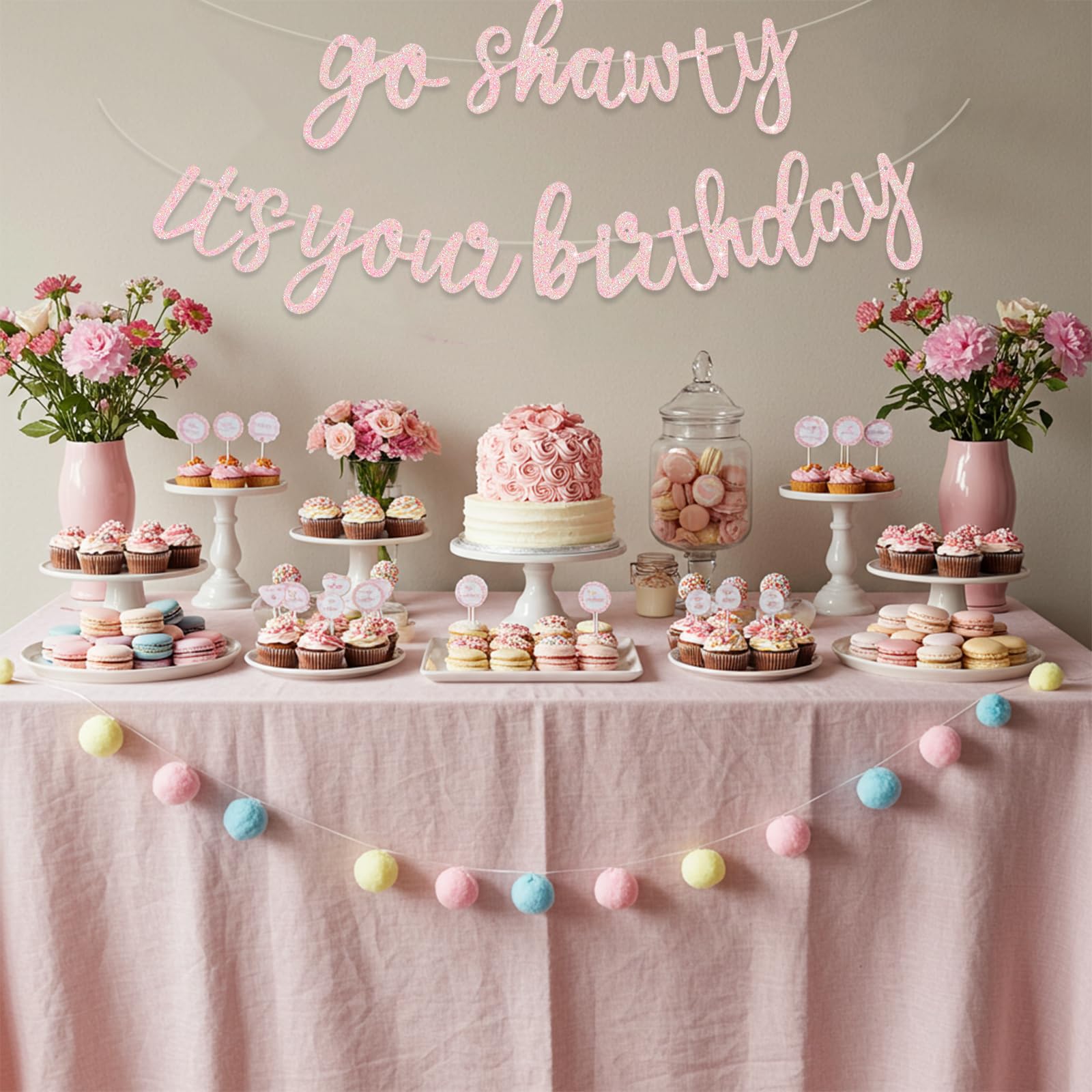Product includes : A Glitter NO DIY Go Shawty It's Your Birthday Banner is included in our product. It is a very convenient birthday banner that can save your time and decorate your birthday party very well.