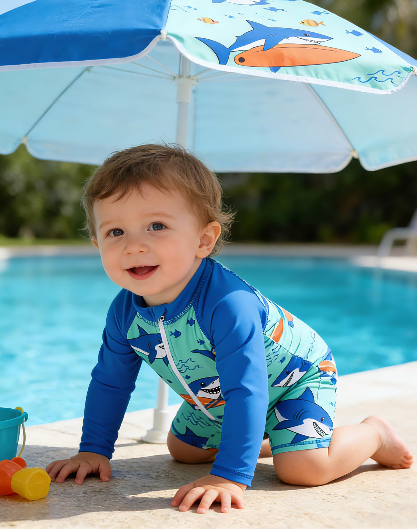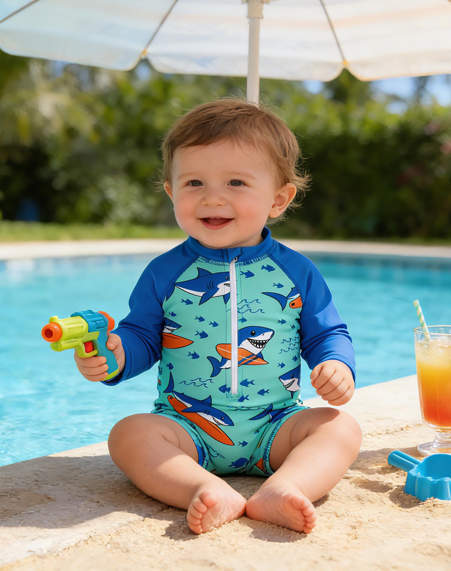 Long sleeve swimsuit with great protection from the sun.It's exactly what your baby needs for the summer.