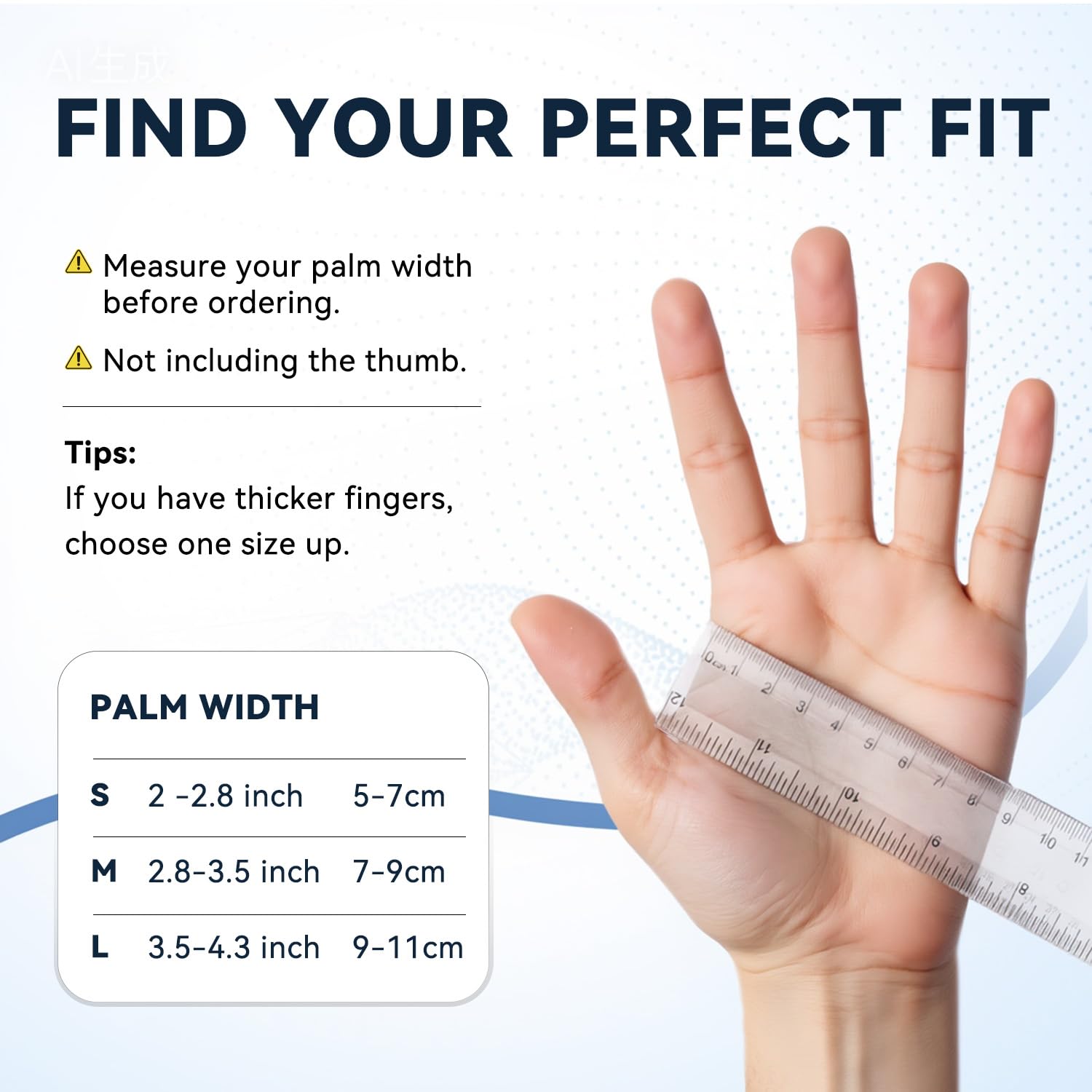 ใOpen Finger Designใ Performs everyday tasks like using the phone, typing, cooking, and more without interfere nce. opening is set at optimal length to provide the perfect balance between beneficial compression support and finger/thumb mobility.